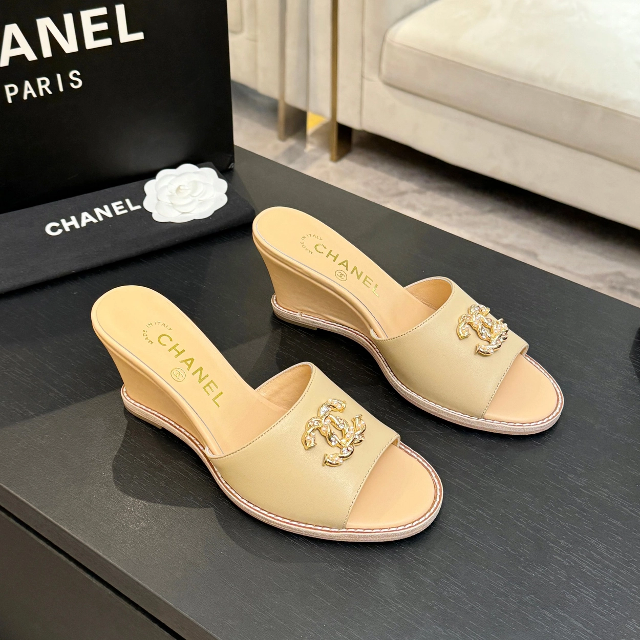 샤넬(CHANEL) 가죽 웨지 슬리퍼 신발