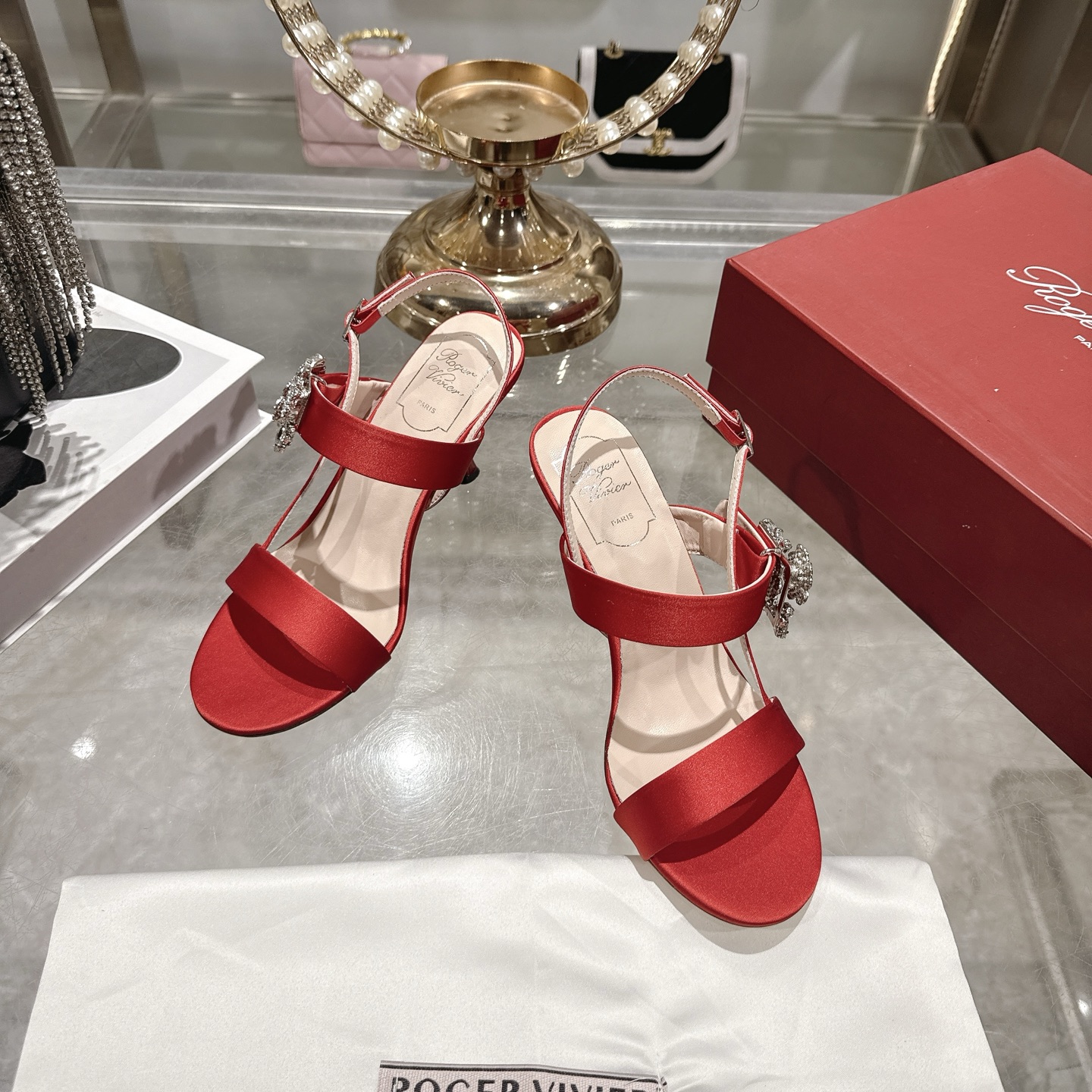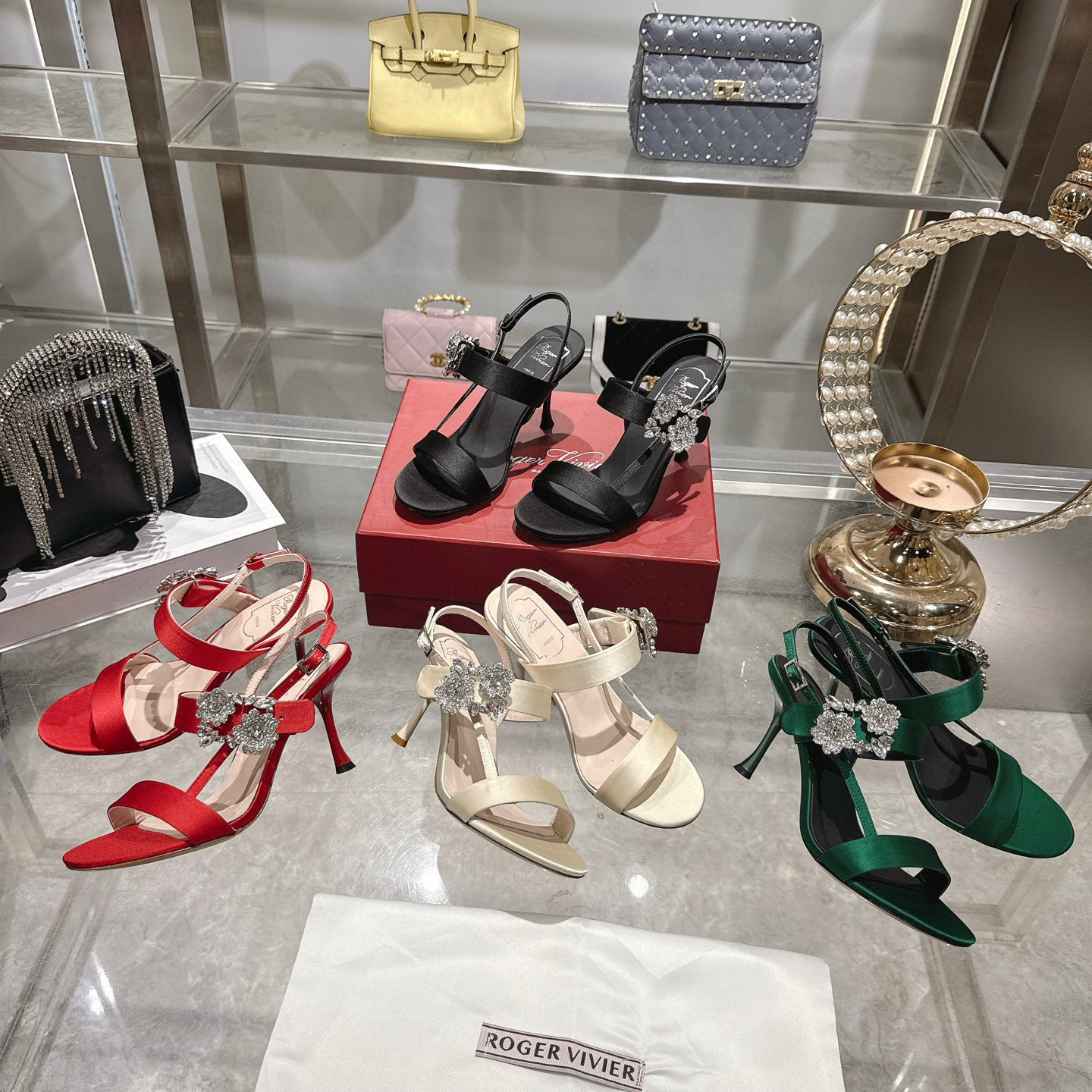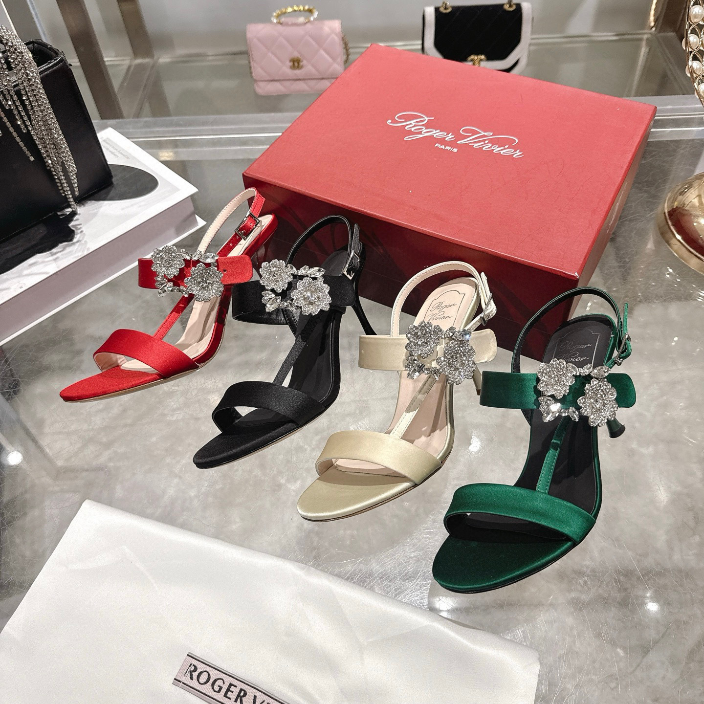 Roger vivier RV 로저 비비에 플라워 큐빅 힐 굽 샌들 구두 신발
