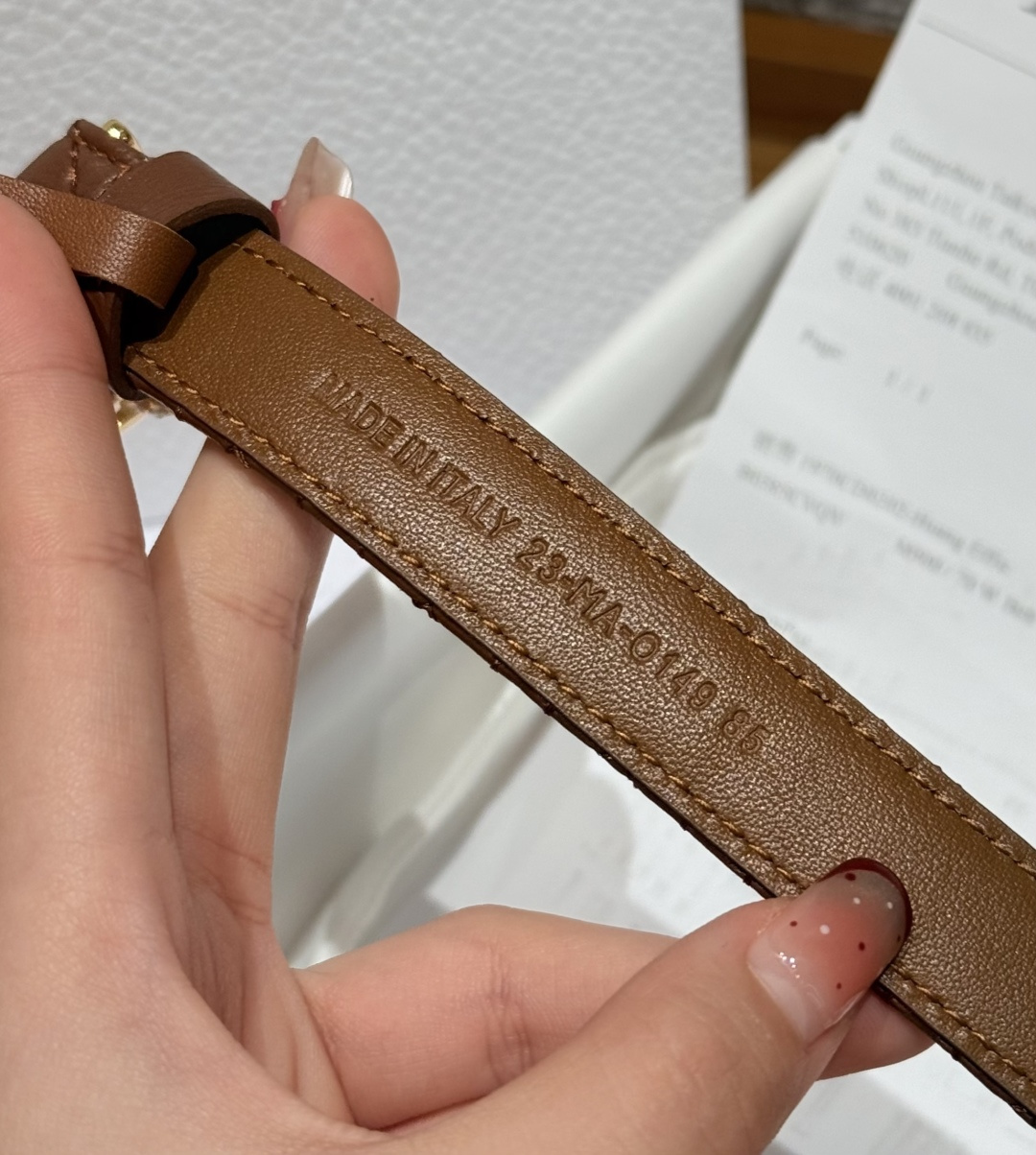 소재: 이탈리아 수입 최상급 최상층 소가죽. 전면은 디올 특유의 입체감이 느껴지는 퀼팅 패턴으로, 내면은 매끄러운 평직 가죽으로 마감하여 견고함과 고급스러움을 동시에 확보