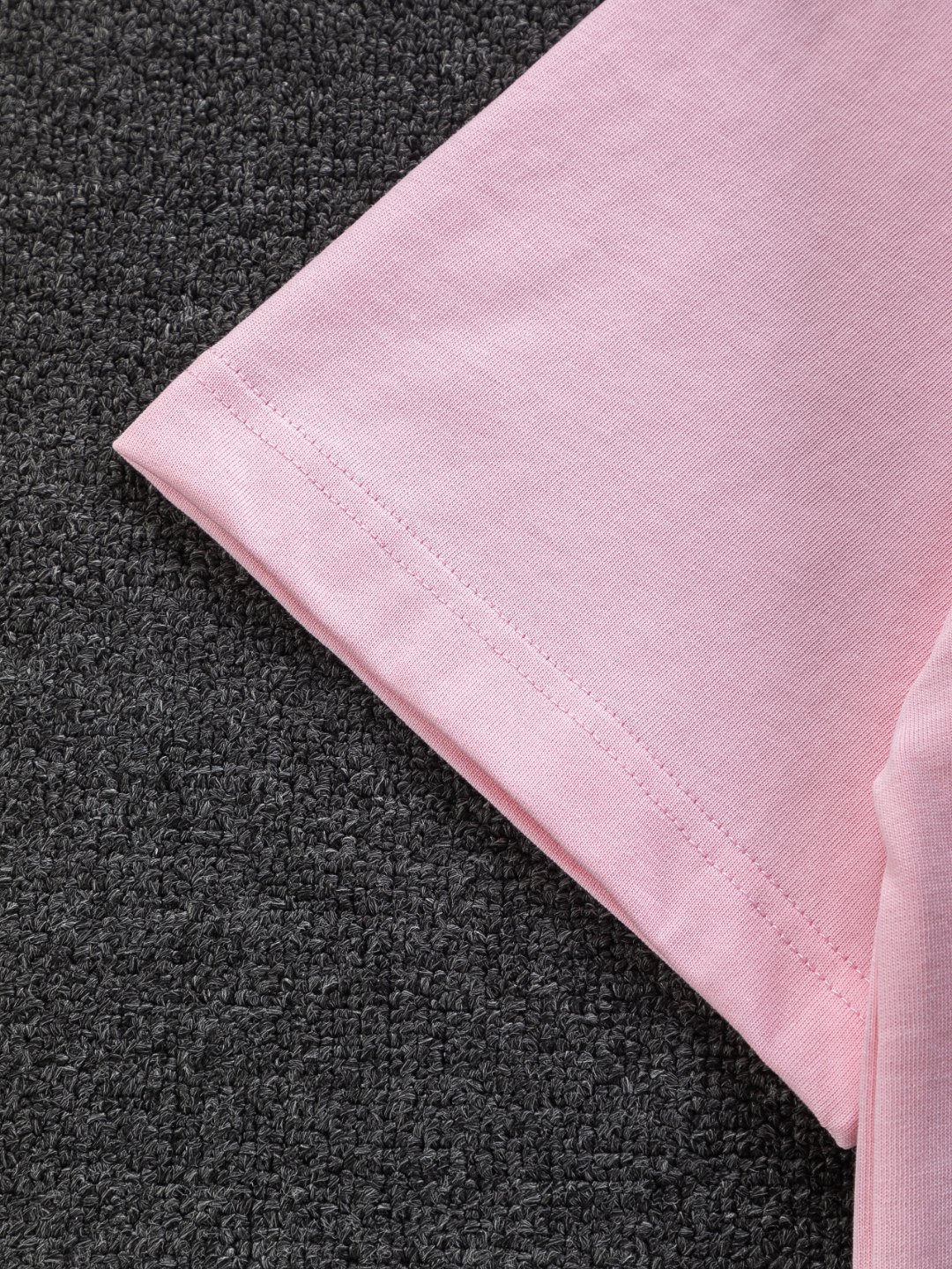 "레드 하트 자수 로고가 포인트인 미니멀 반팔 티셔츠"