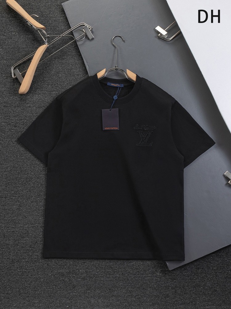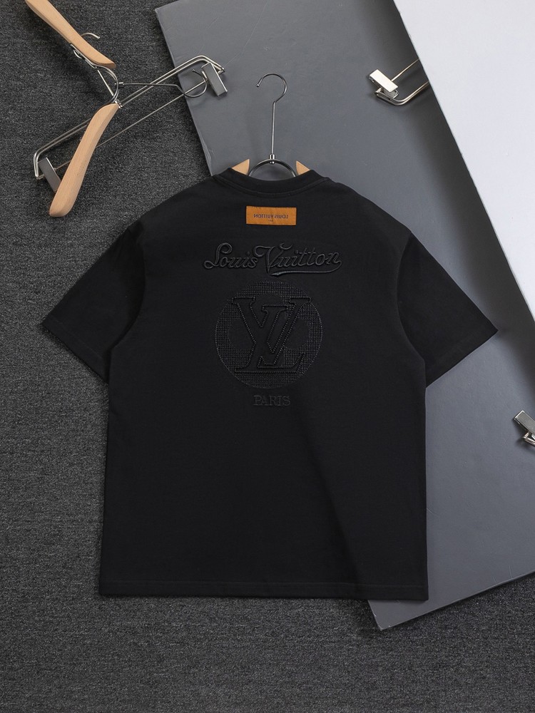 "전면 심플 LV 자수와 후면 컷아웃 레터링 자수가 포인트인 반팔 티셔츠"