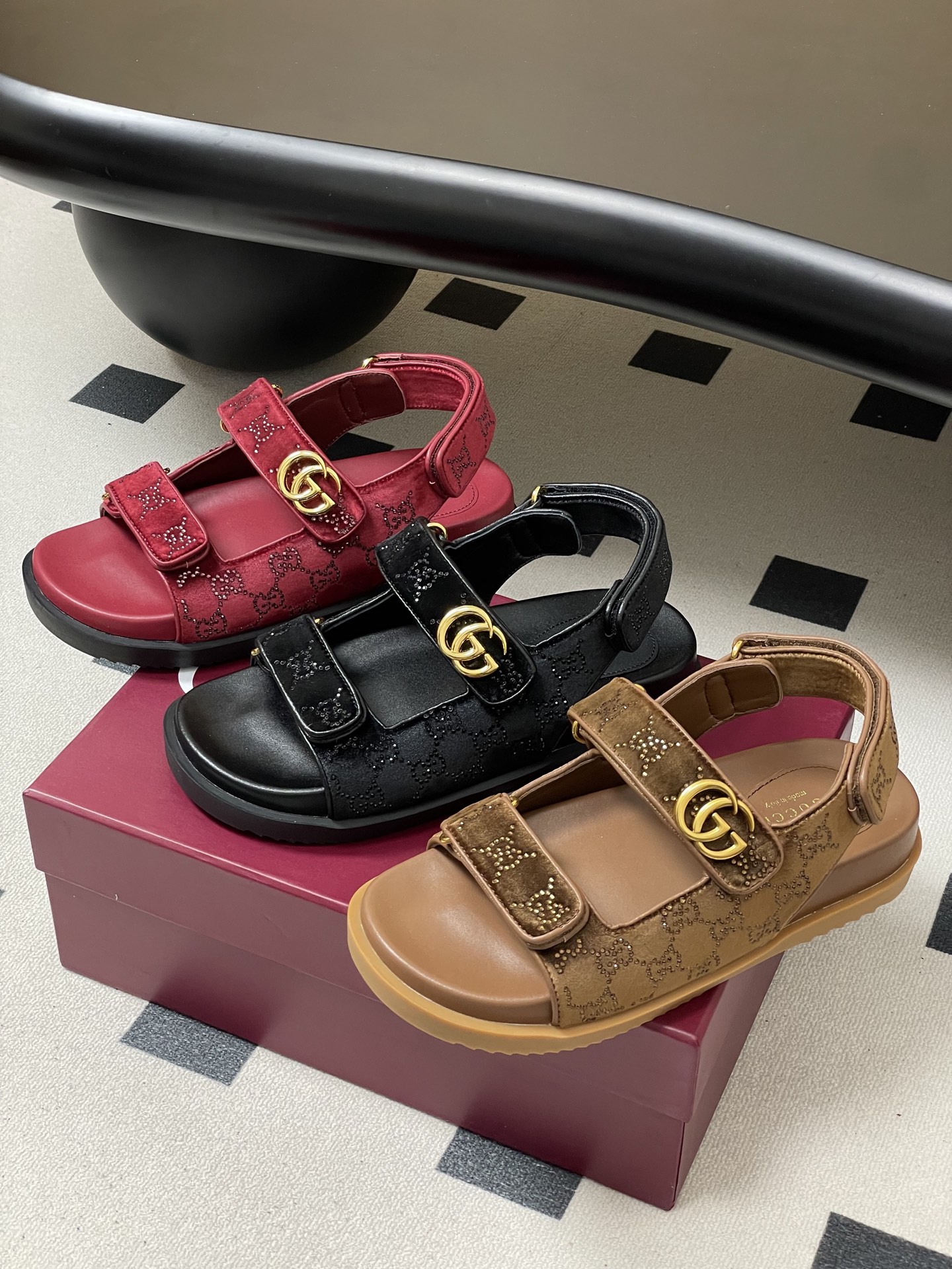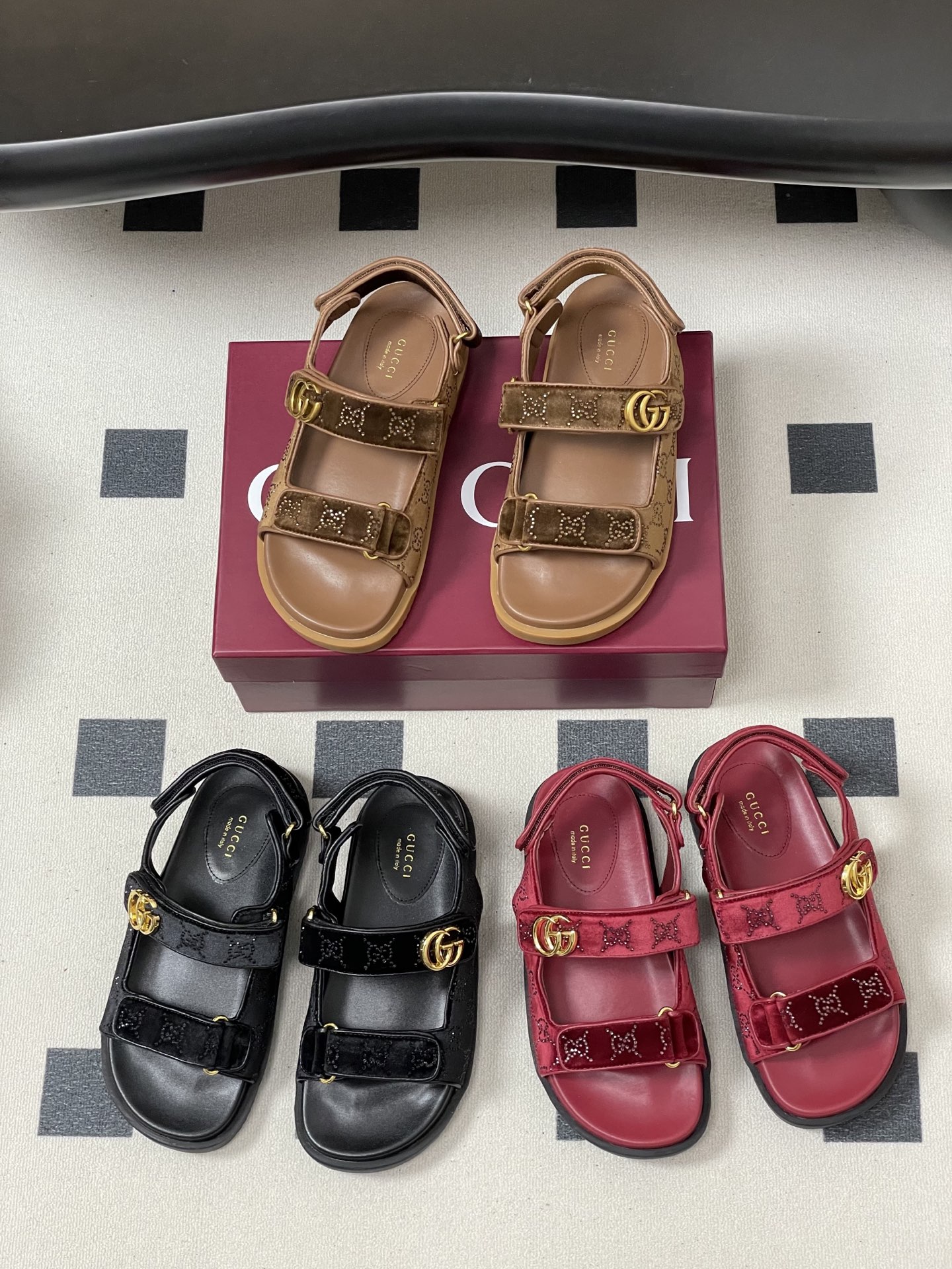 구찌(Gucci) GG 크리스탈 벨크로 샌들 슬리퍼 신발