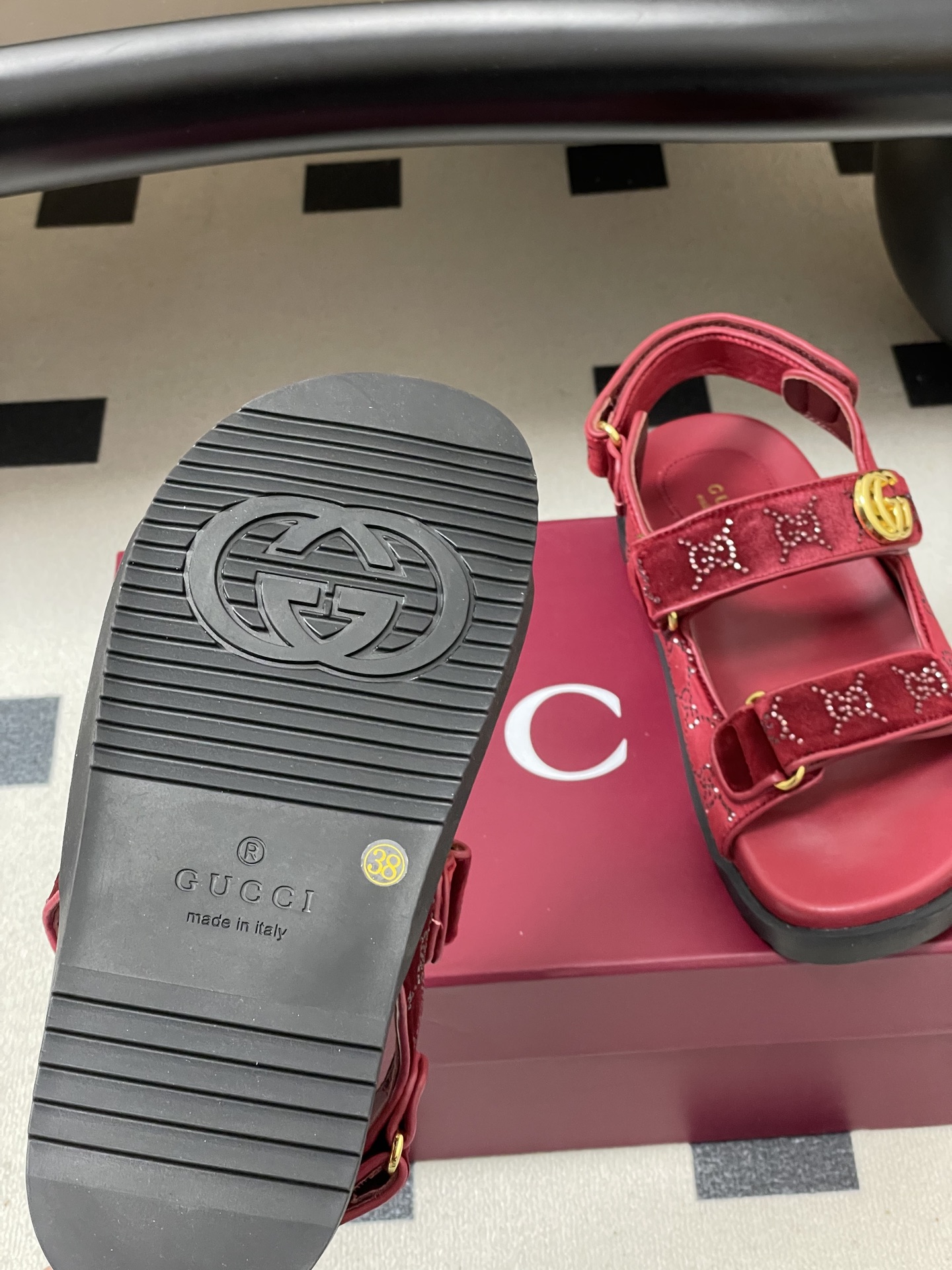 바닥: 정품 1:1 복각 더블 G 로고 각인 고무 아웃솔