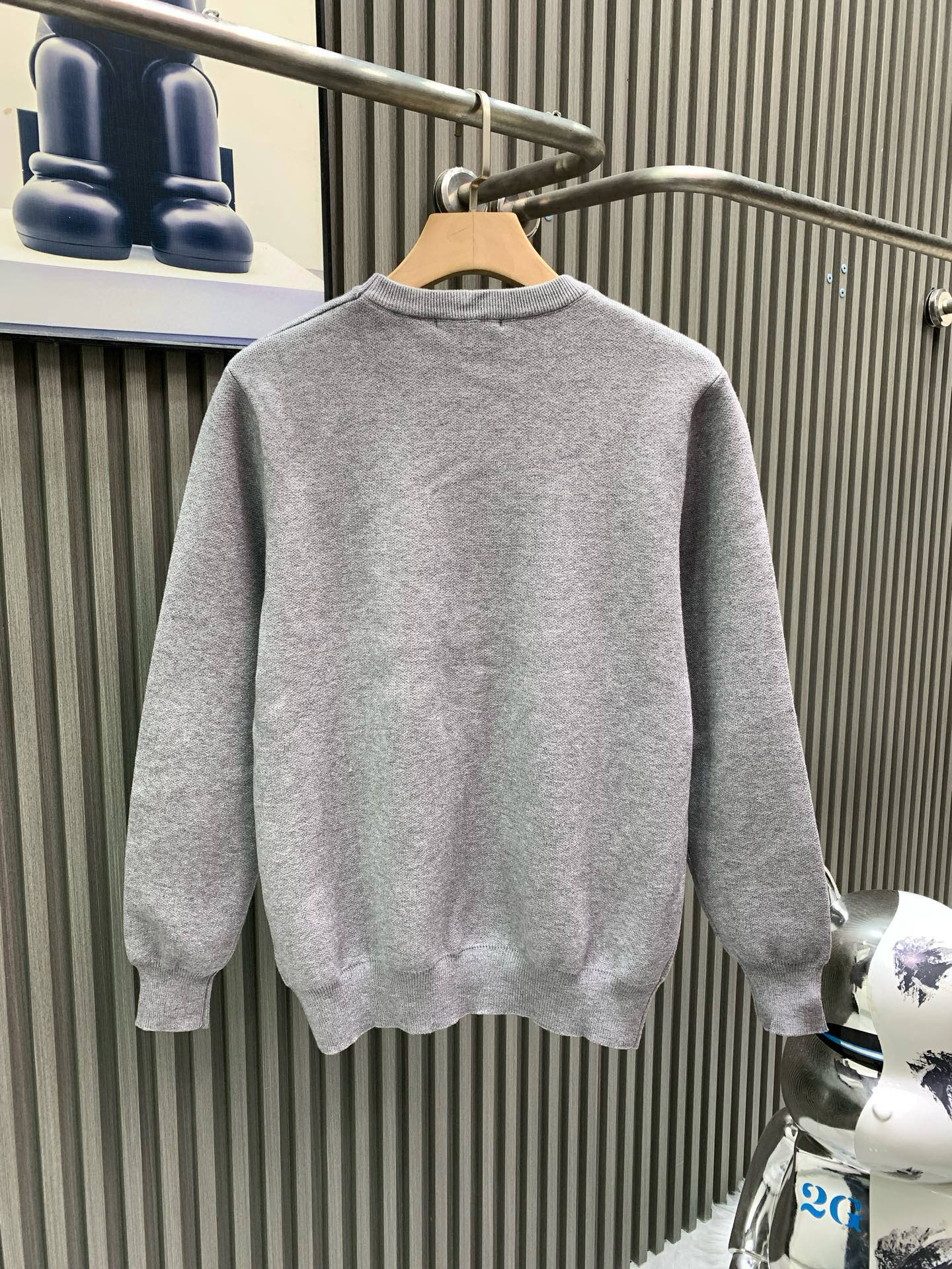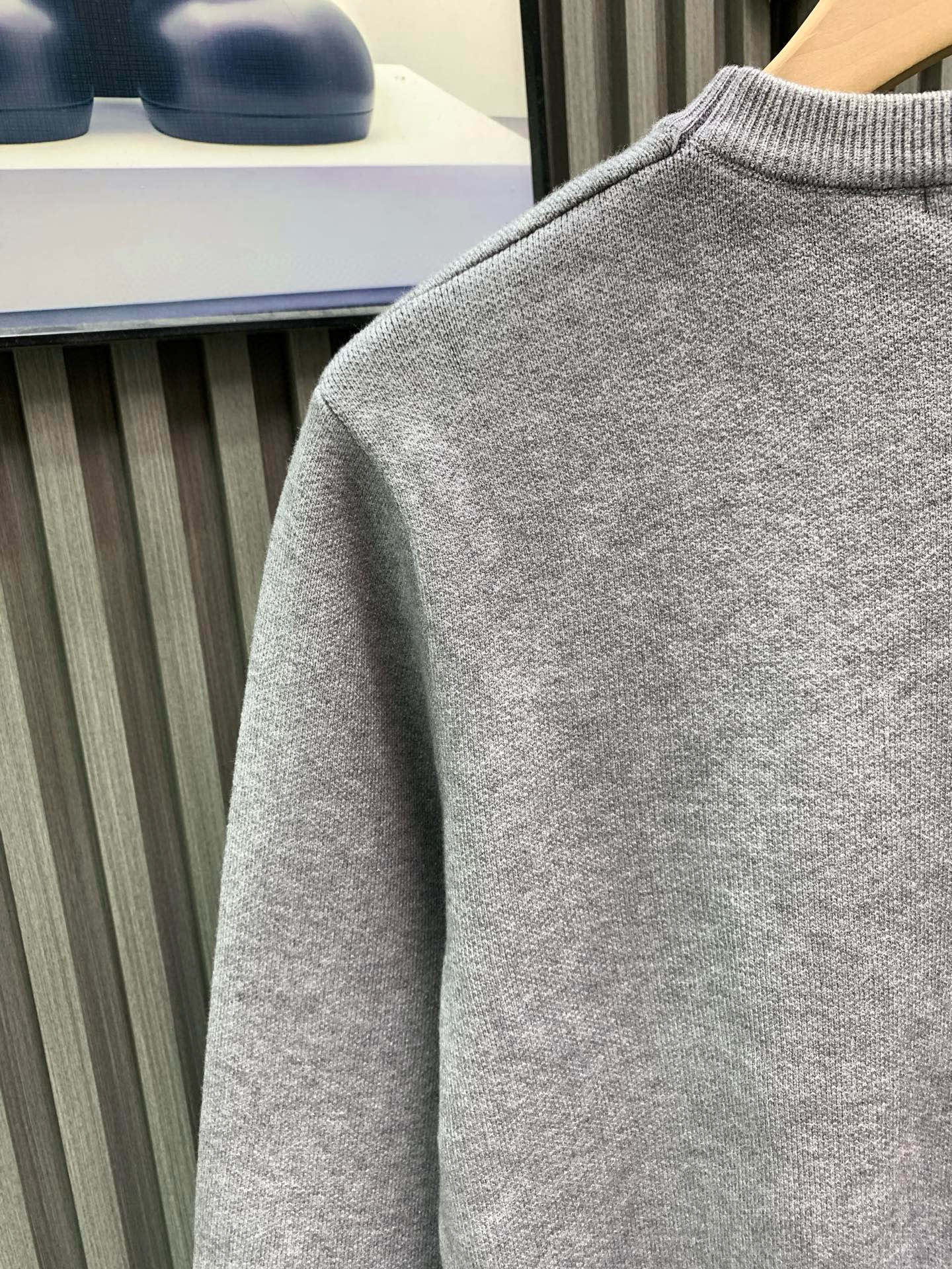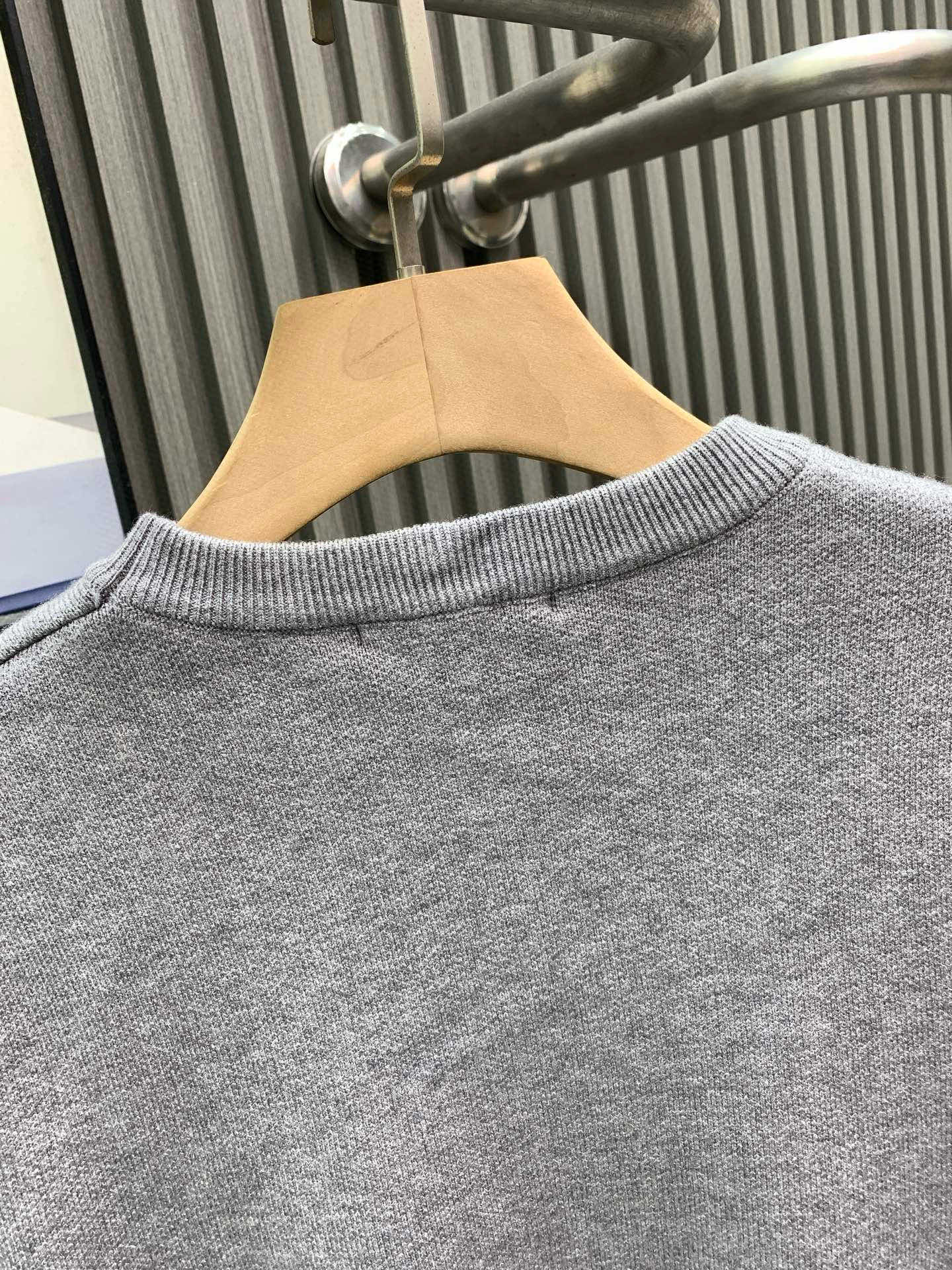 “가슴 배색 로고 자카드가 적용된 루즈 핏 라운드 니트”
