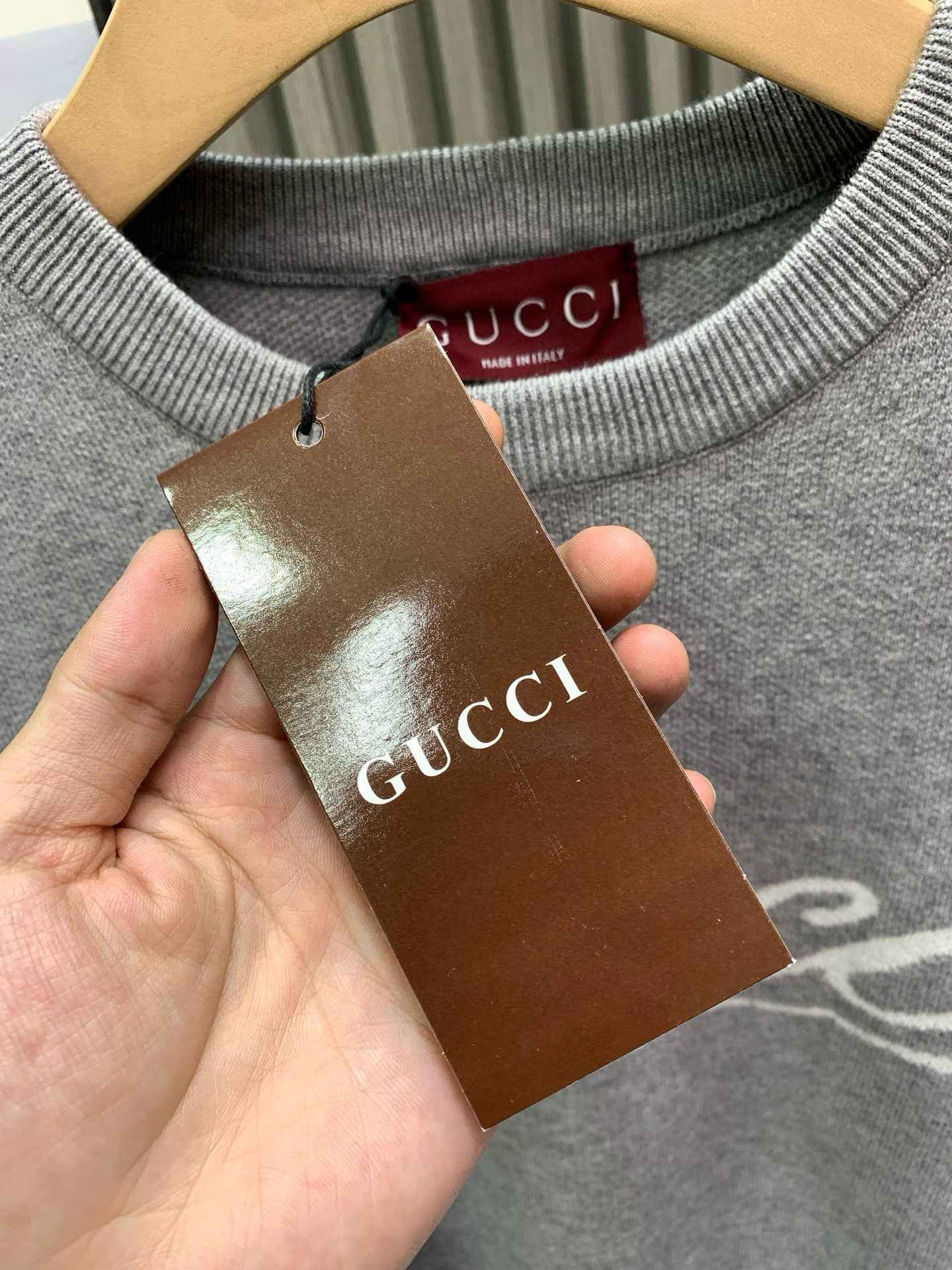 구찌(GUCCI) 화이트 라인 로고 자카드 니트 의류SALE