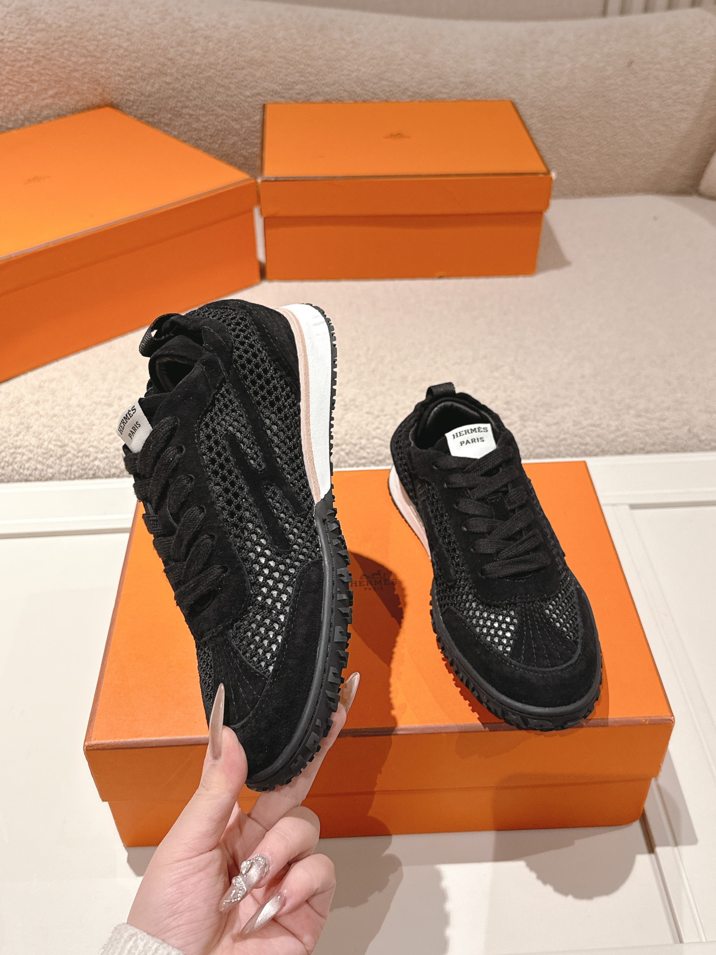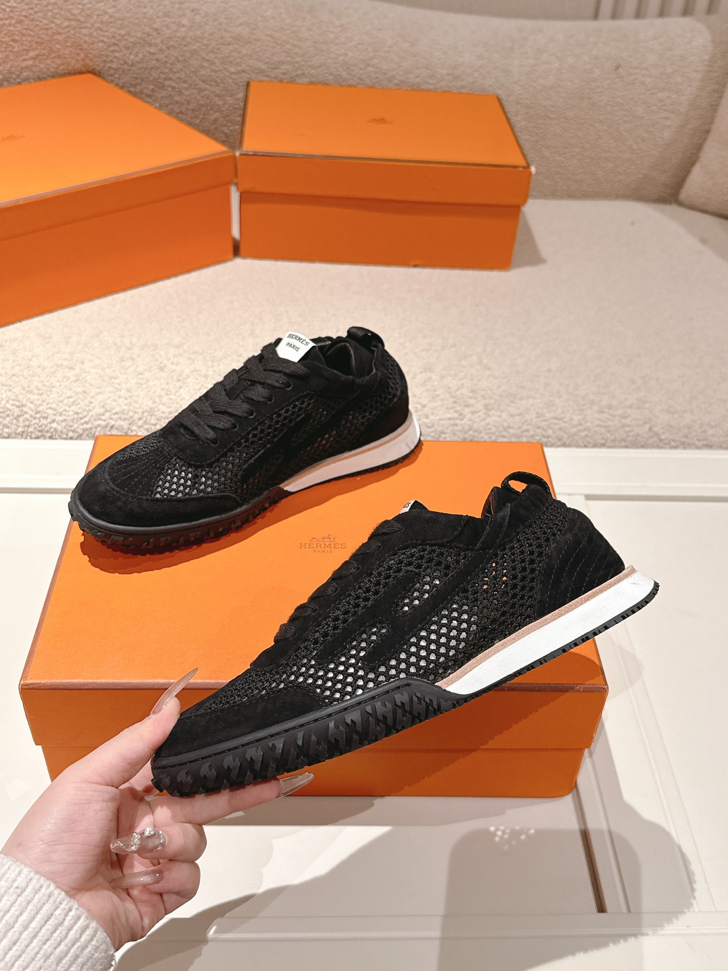 에르메스(HERMES) 스웨이드 고트 레더 스니커즈 신발SALE