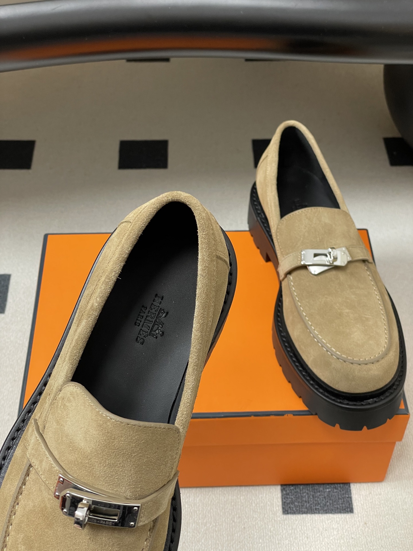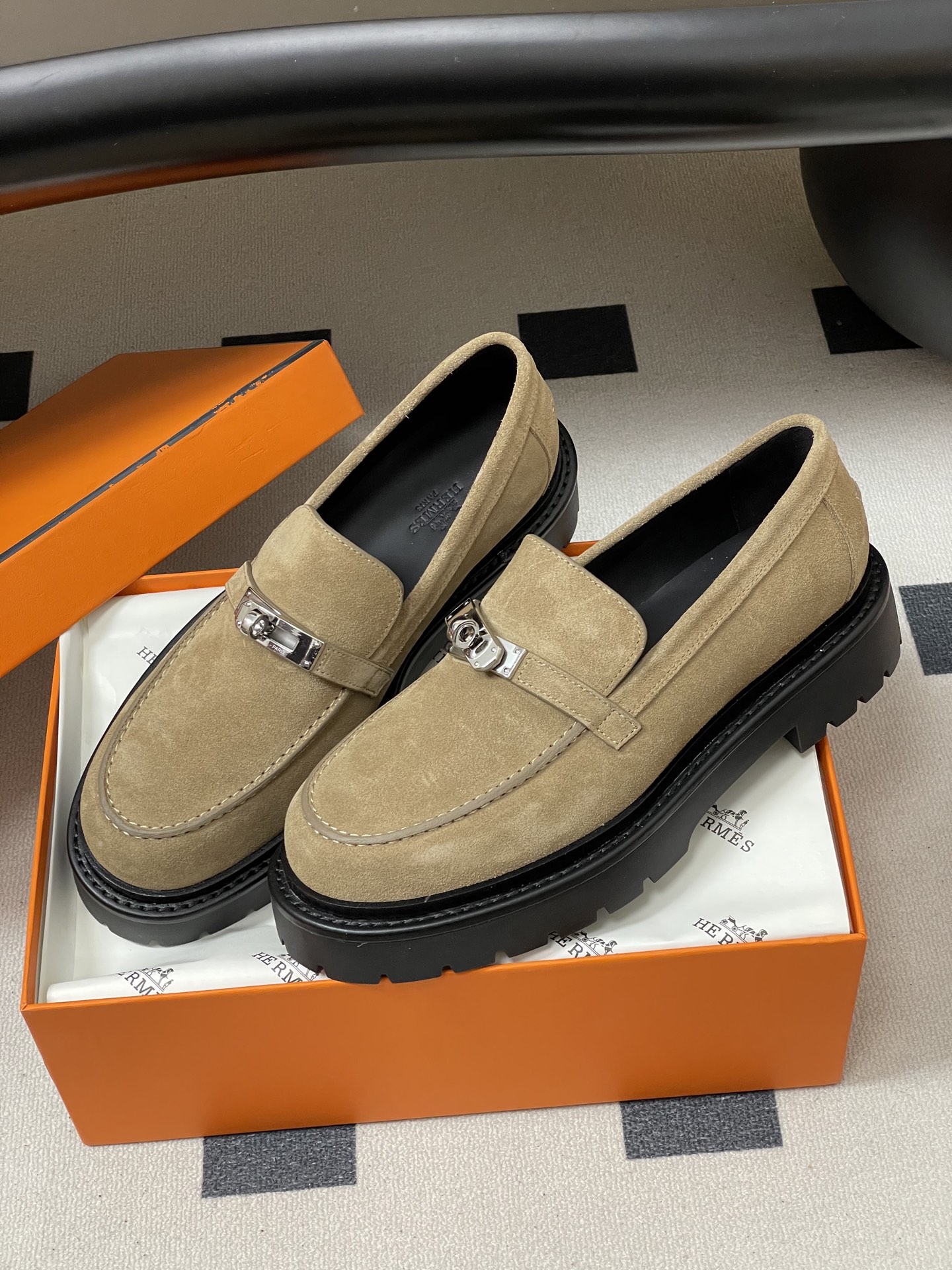 에르메스(Herme) 아이콘 켈리 버클 플랫폼 로퍼 구두 신발