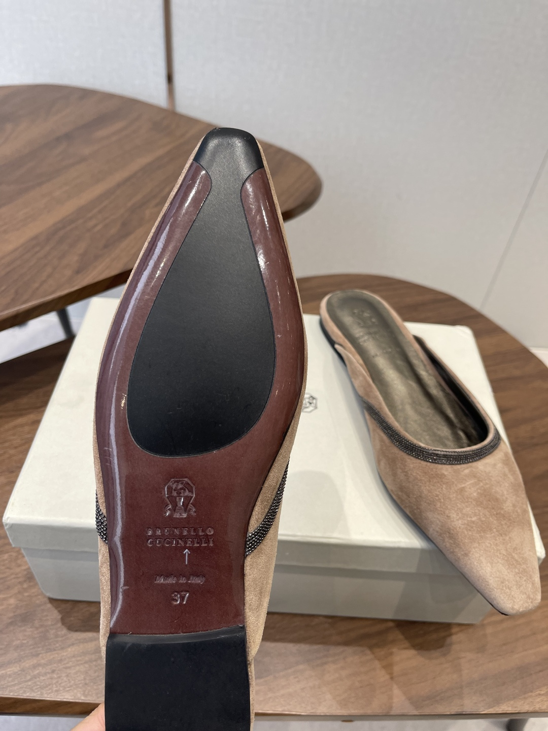 Brunello Cucinelli BC 브루넬로 쿠치넬리 체인 스퀘어토 뮬 슬리퍼 신발