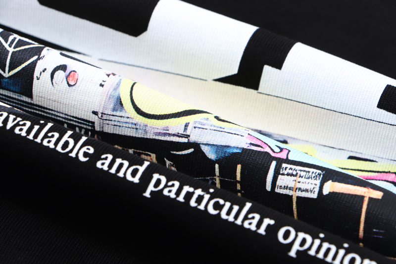 디테일: 정글 사운드·트레인 모티브 디지털 프린트, 리브 조직 넥라인, 스트레이트 밑단 마감