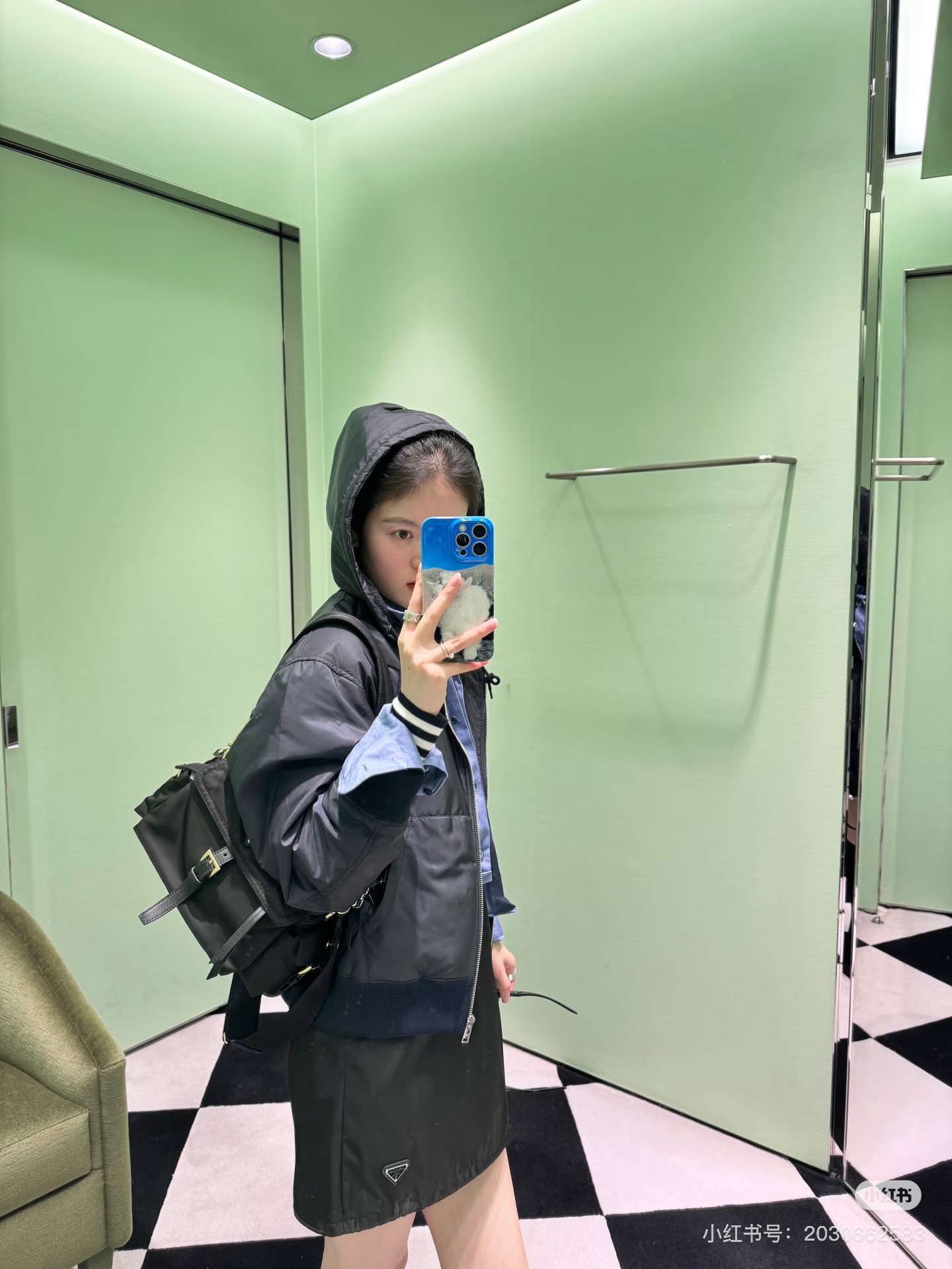 소재: 프라다 고유의 클래식 나일론 — 고급스러운 광택과 탄탄한 조직감이 돋보여요.