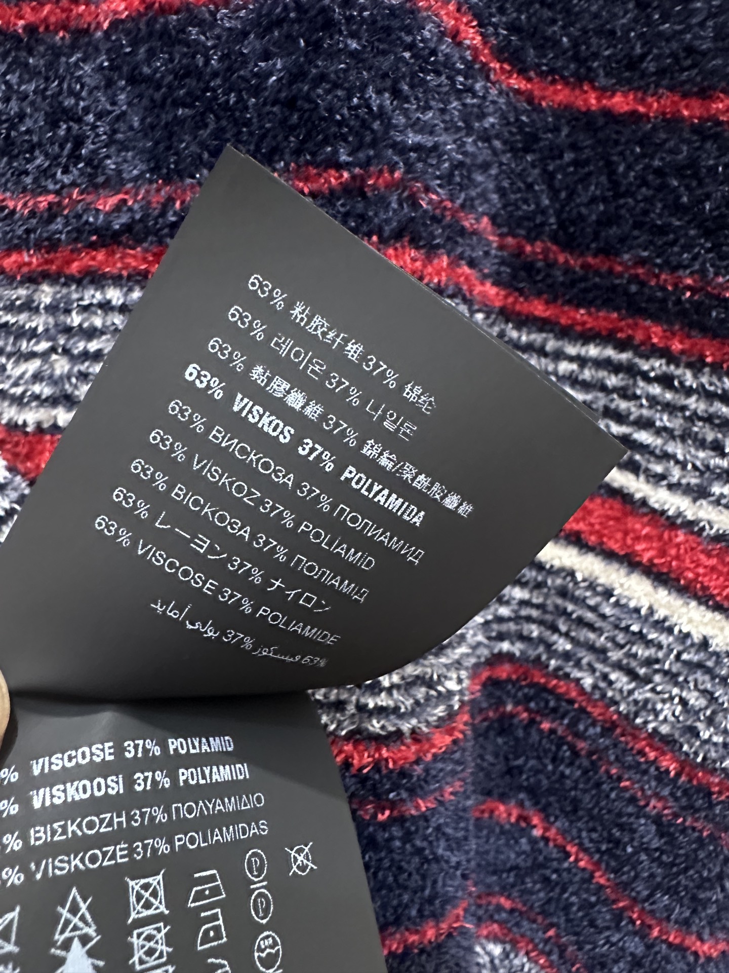 디자인: 블루, 그레이, 화이트, 레드 컬러가 조화롭게 섞인 스트라이프 배색이 세련된 포인트예요.