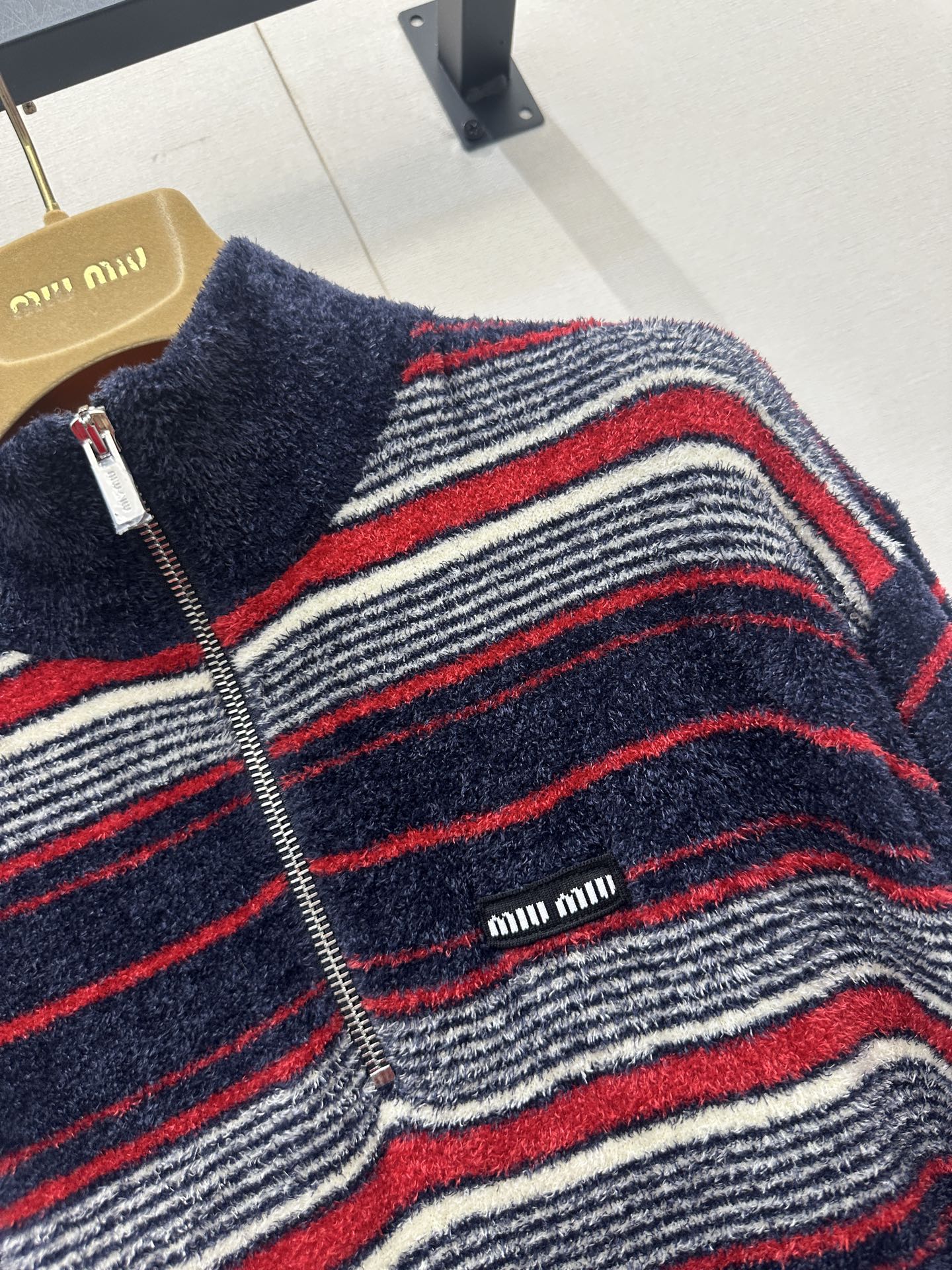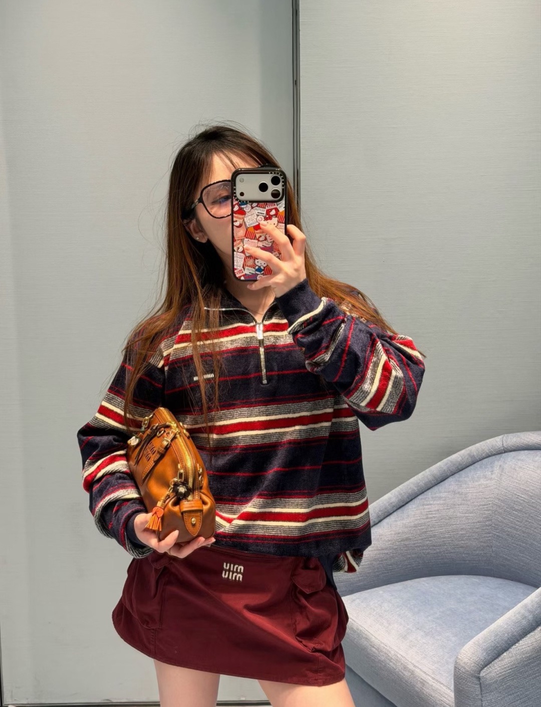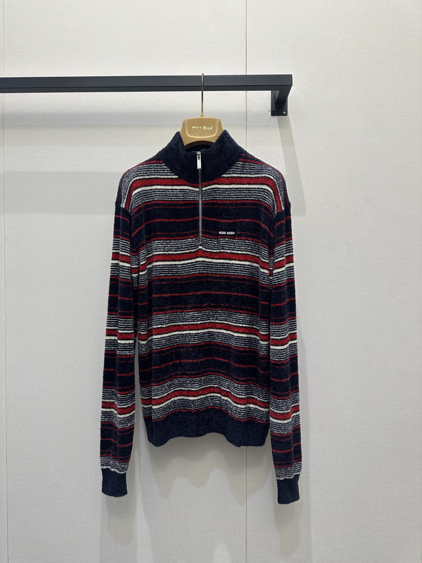 미우미우(MiuMiu) 스트라이프 하프 반집업 티셔츠 의류SALE