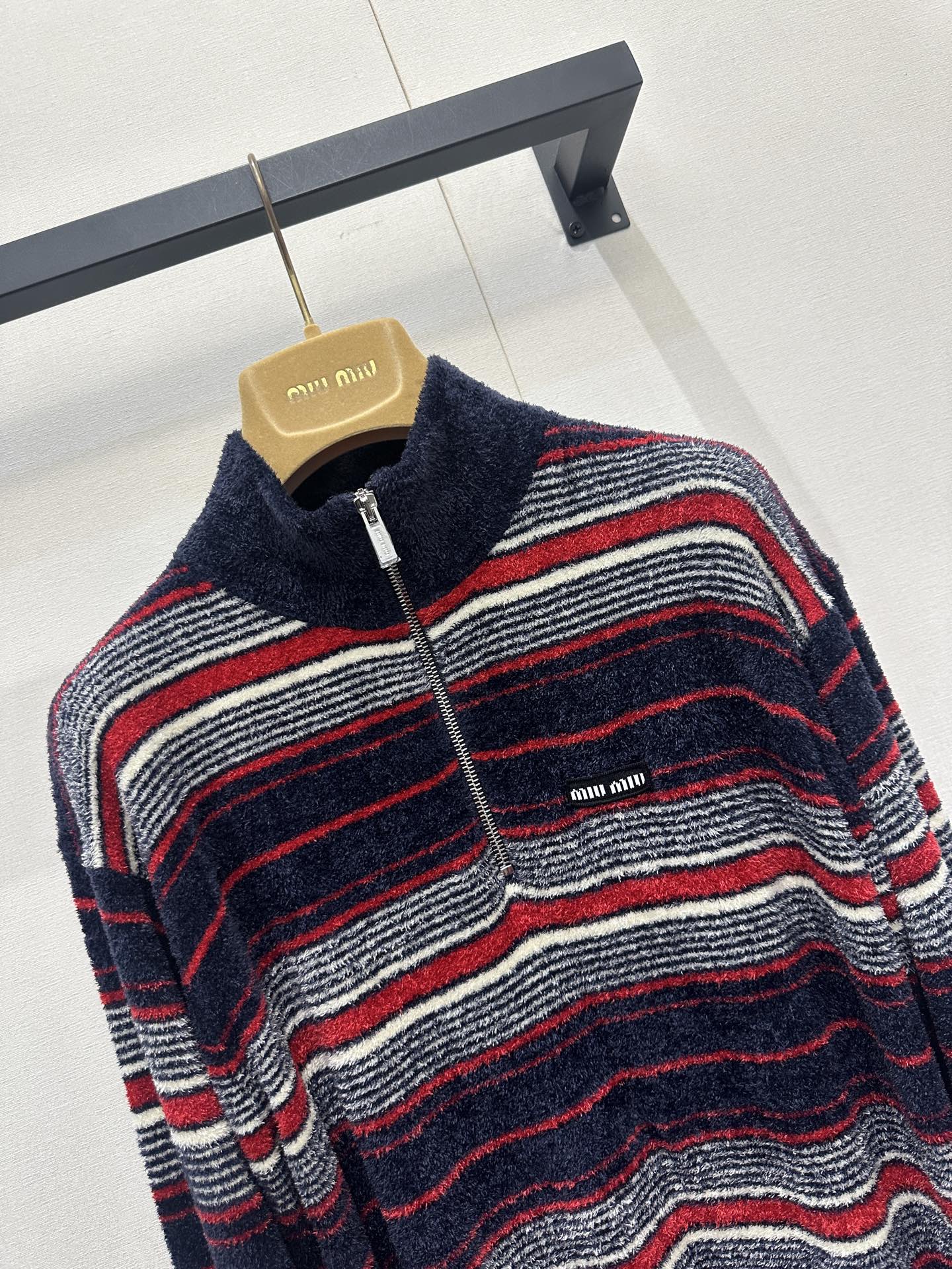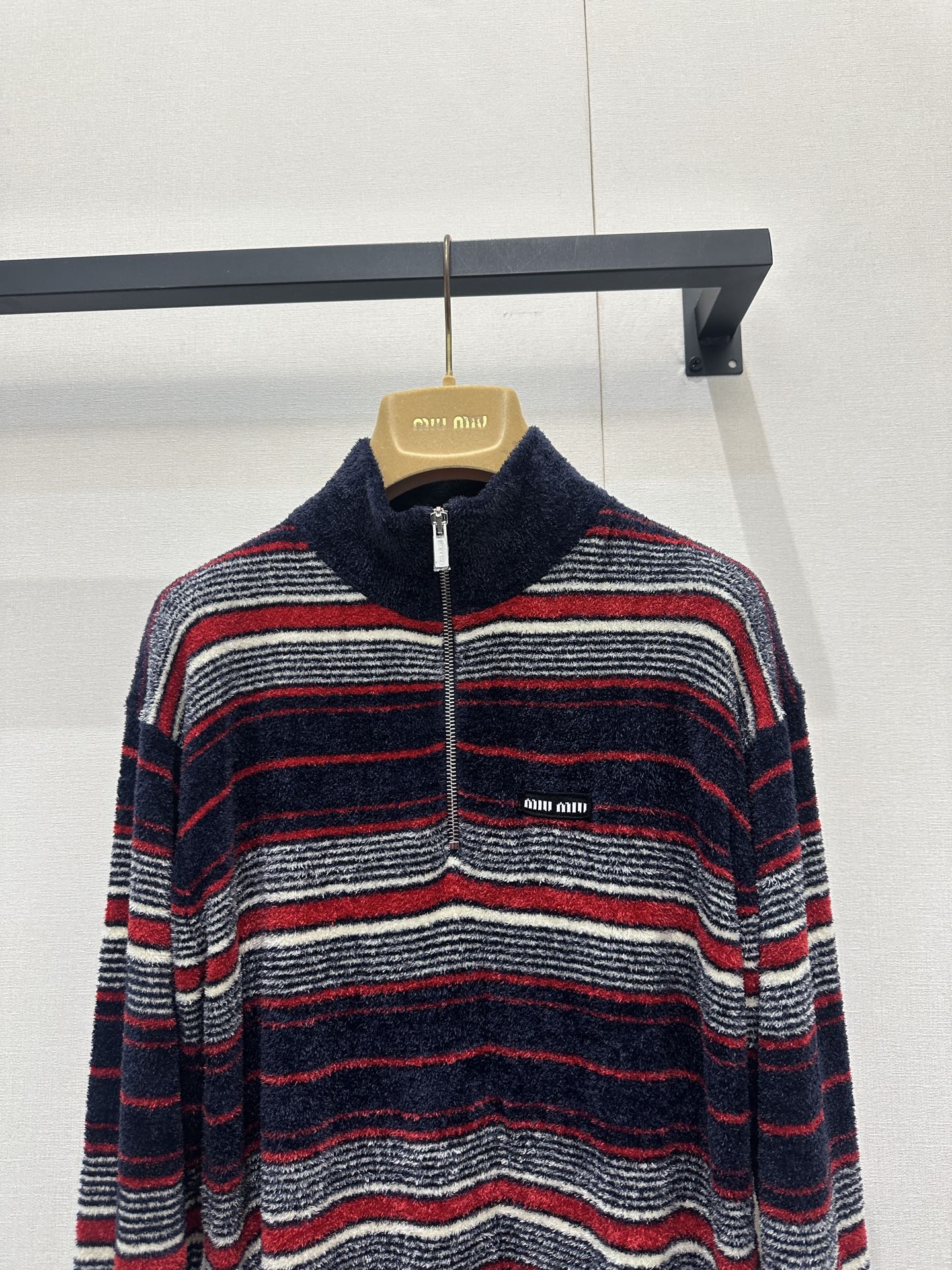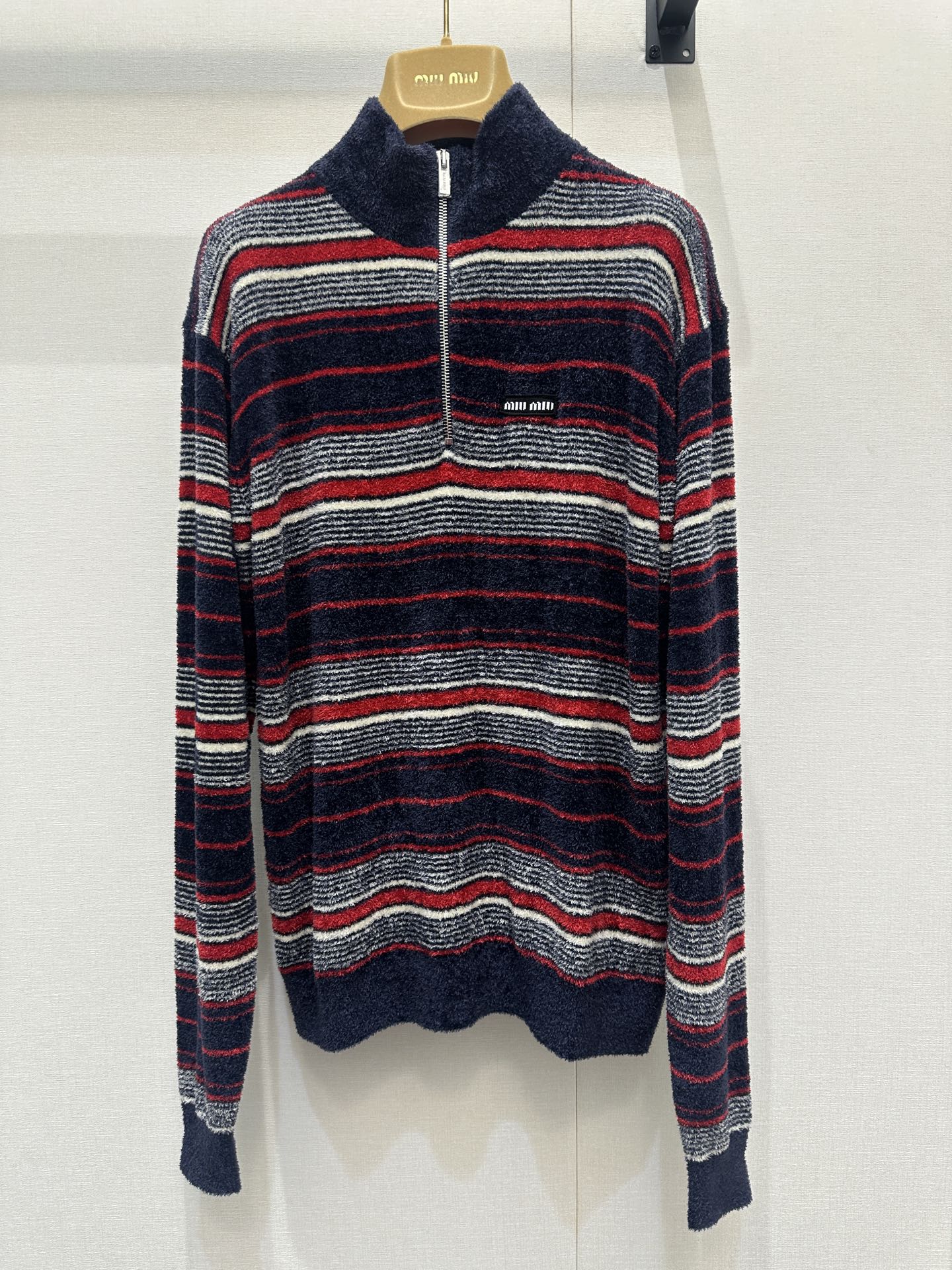 미우미우(MiuMiu) 스트라이프 하프 반집업 티셔츠 의류SALE
