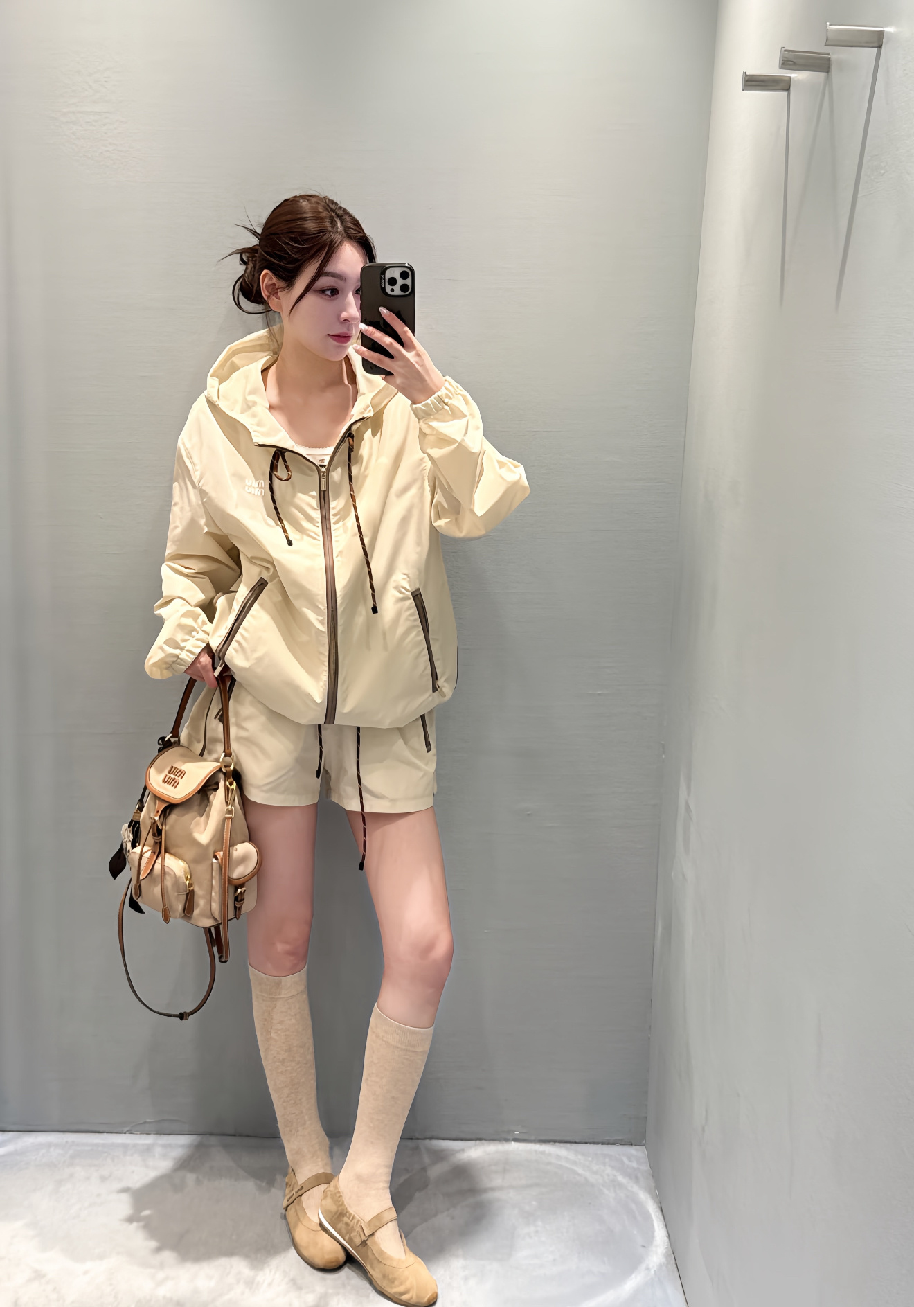 미우미우(MiuMiu) 로고 나일론 후드 자켓 재킷 바람막이 의류NEWSALE
