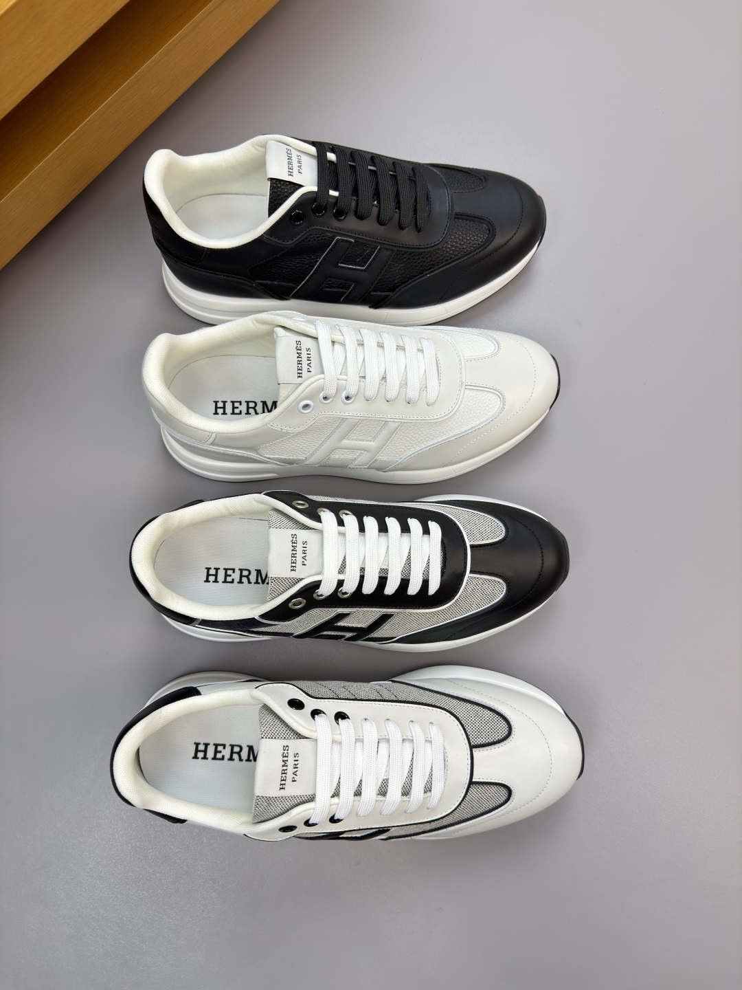 에르메스(Hermes) 나파 가죽 & 실크 캔버스 스니커즈 신발