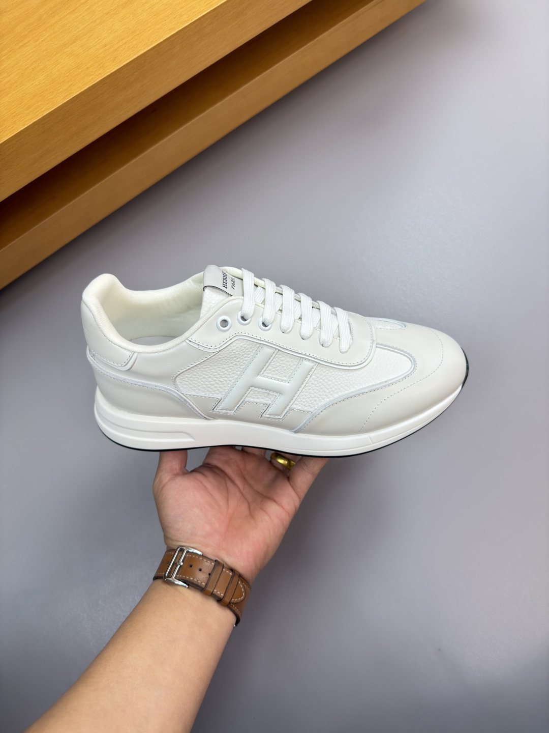 디테일: 측면 'H' 로고 스티치 자수 & 설포(혀) 브랜드 로고 직조 라벨