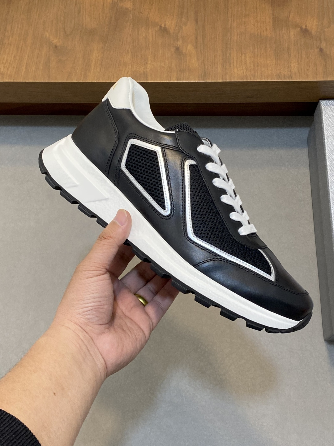 프라다(Prada) 지오메트릭 스티치 콤비 스니커즈 신발