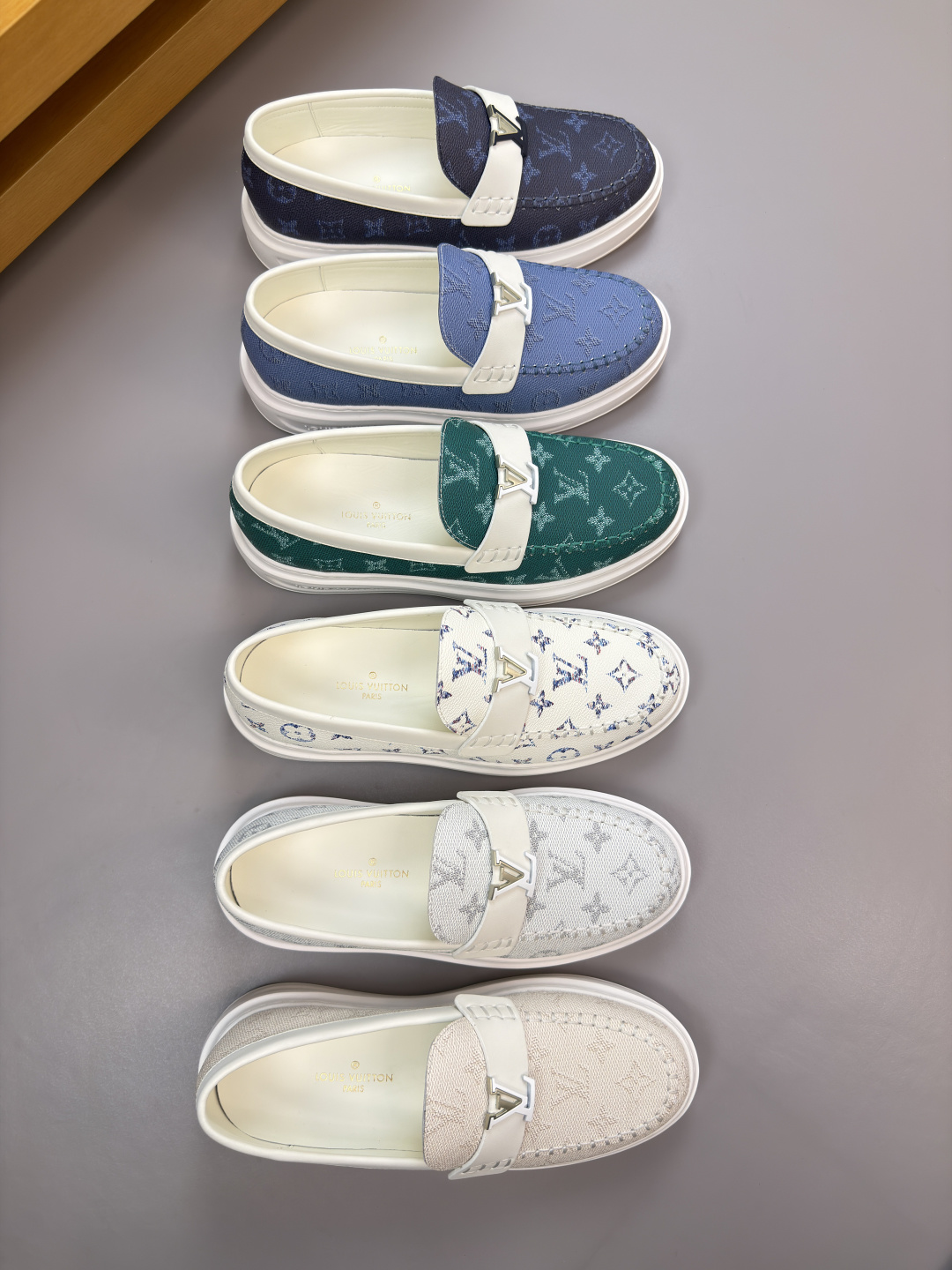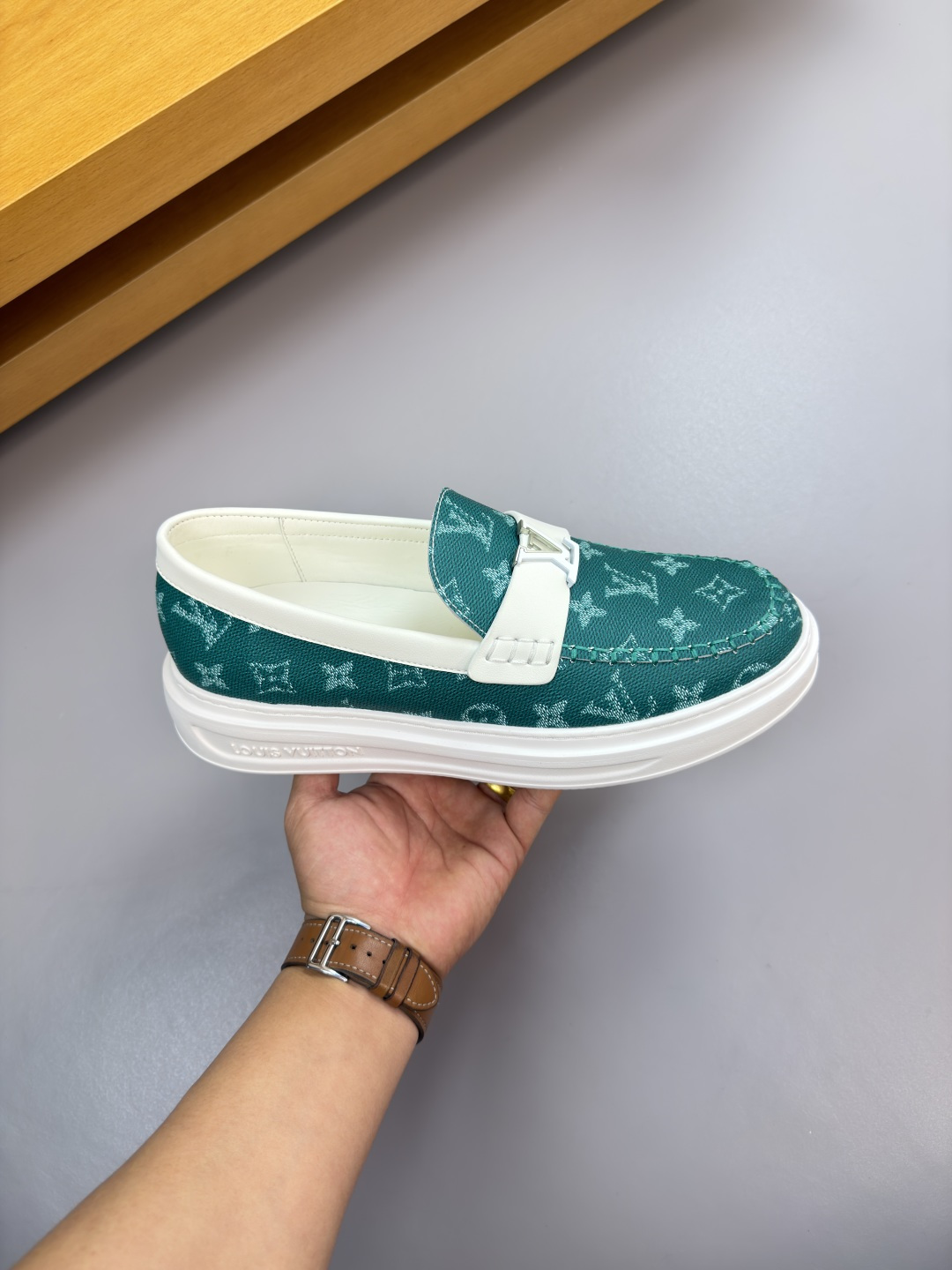 루이비통(LV) 나파 레더 & 모노그램 마크 스티치 스니커즈 슬립온 로퍼 신발