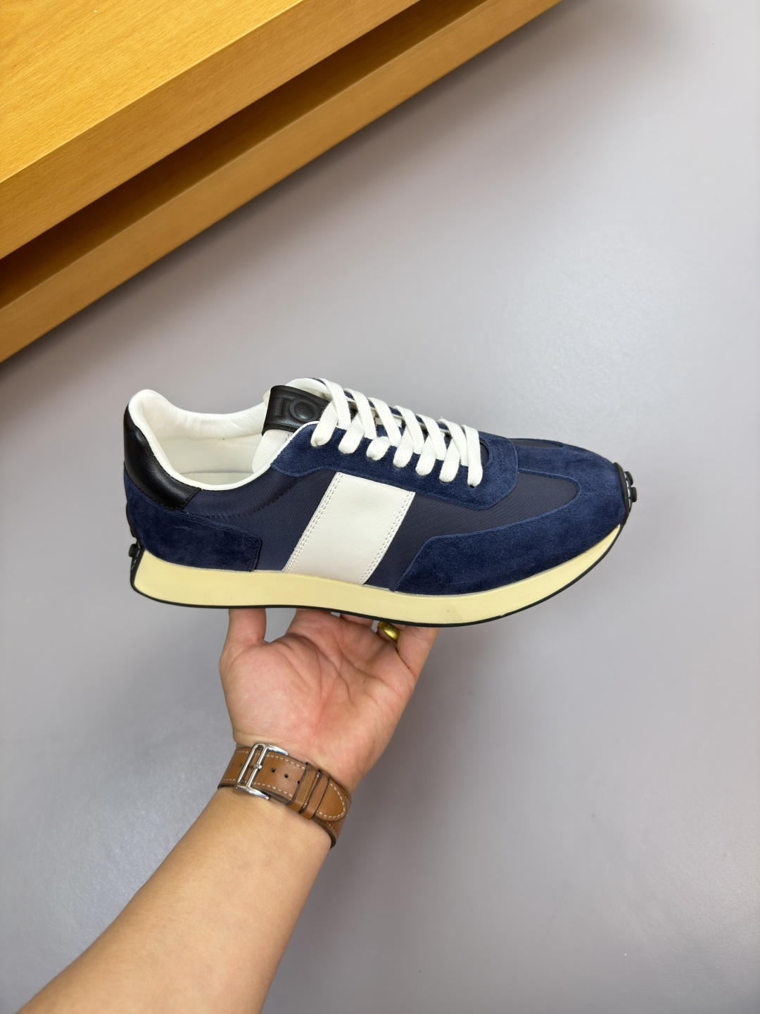 소재: 최상급 나파 소가죽 + 부드러운 리버스 스웨이드 + 고광택 실크 캔버스 콤비