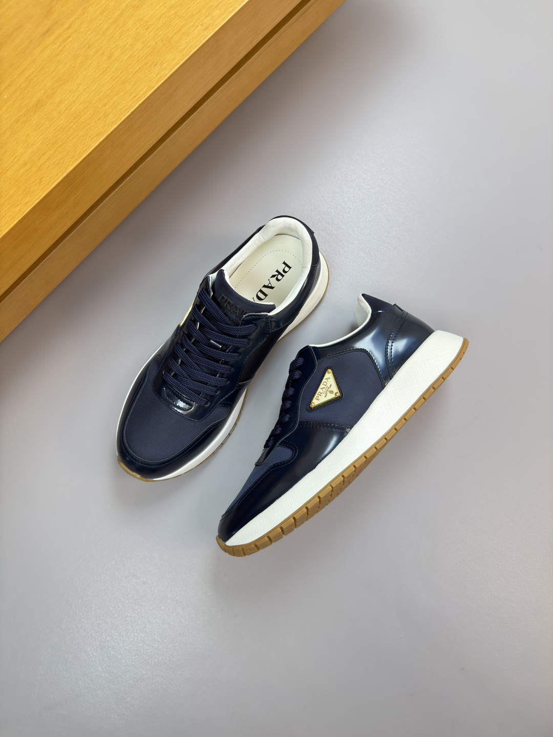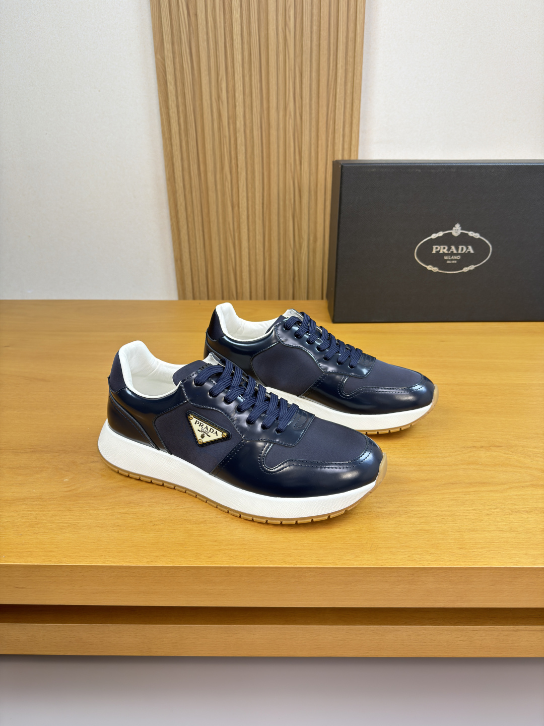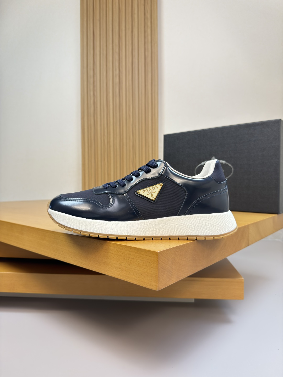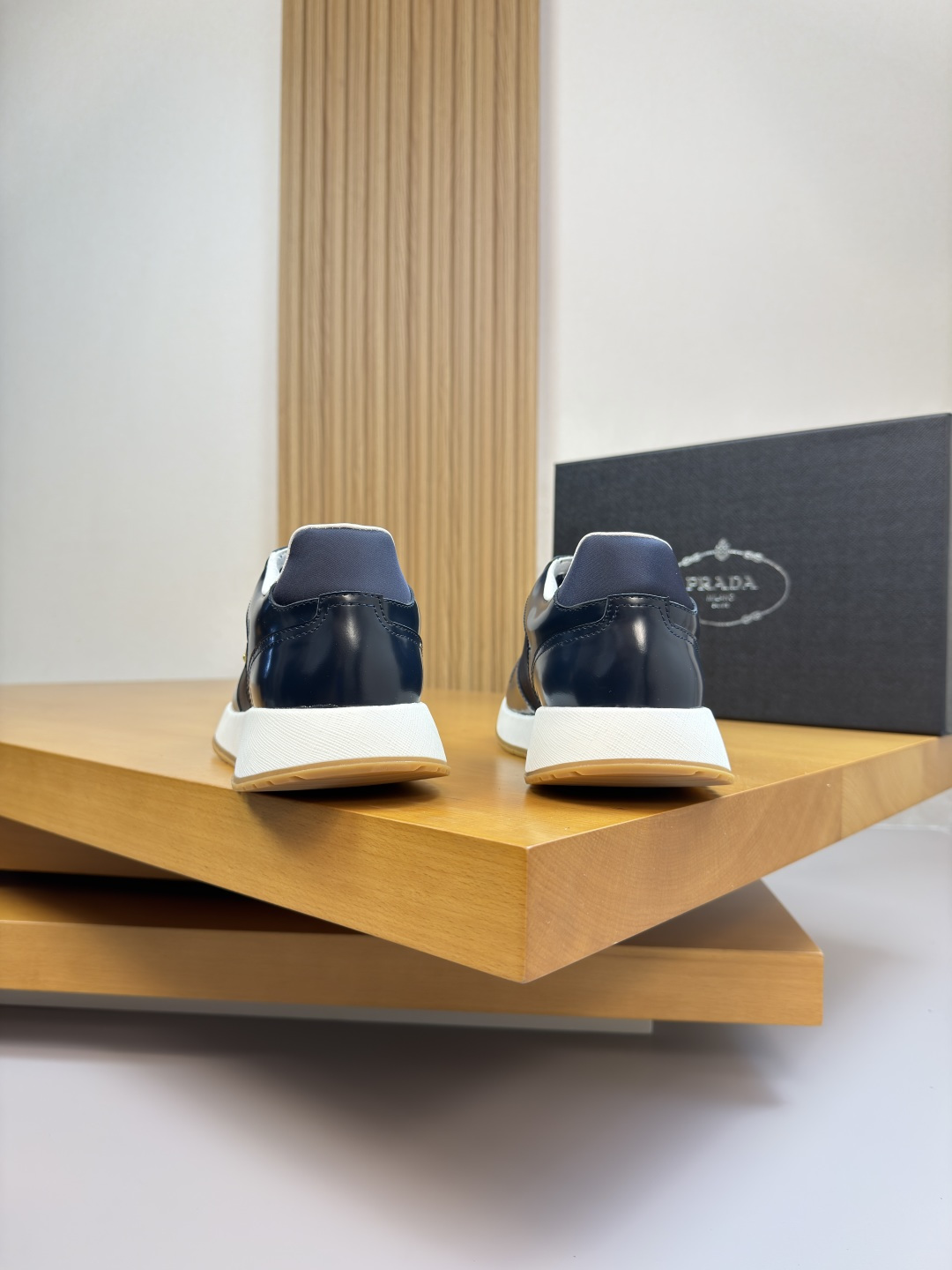 프라다(Prada) 광택 레더 & 캔버스 메탈 로고 스니커즈 신발NEWSALE