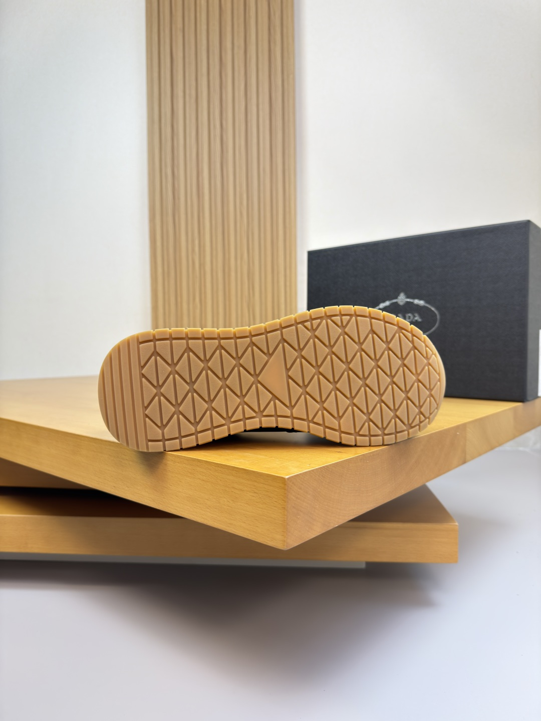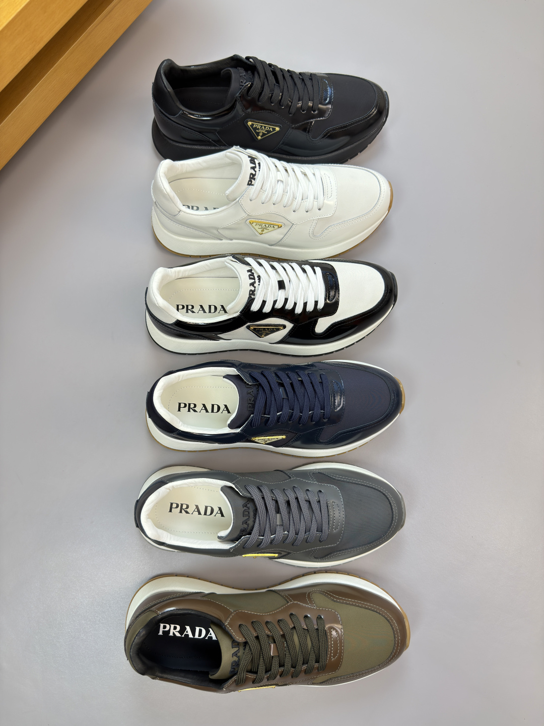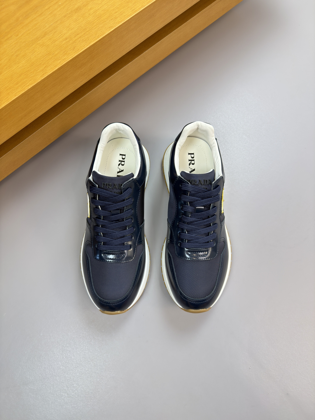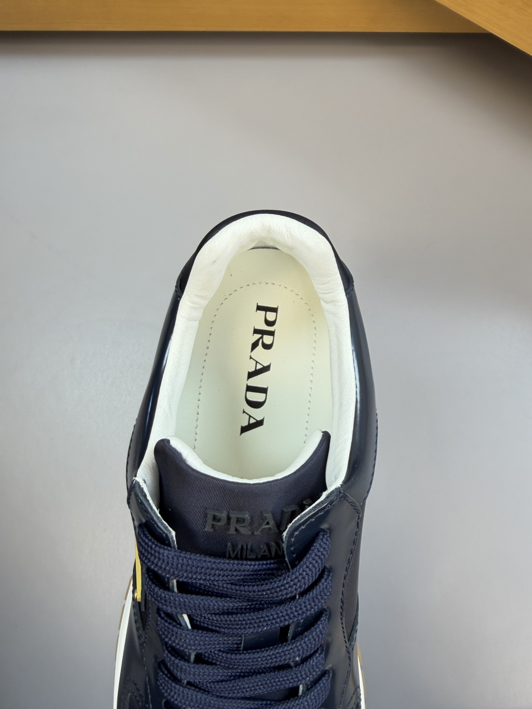 프라다(Prada) 광택 레더 & 캔버스 메탈 로고 스니커즈 신발NEWSALE