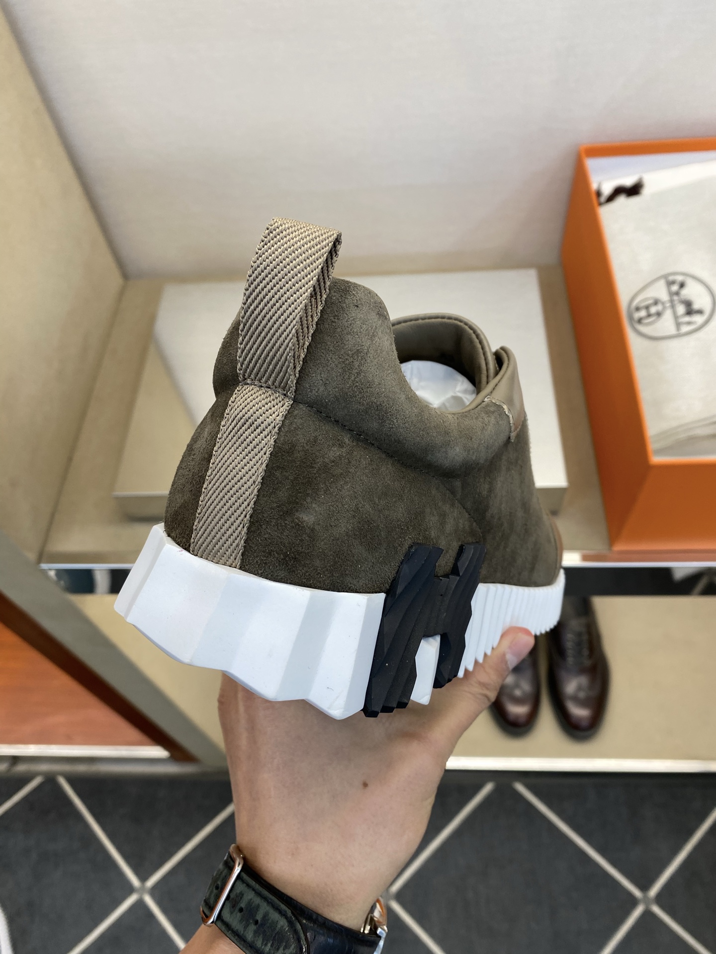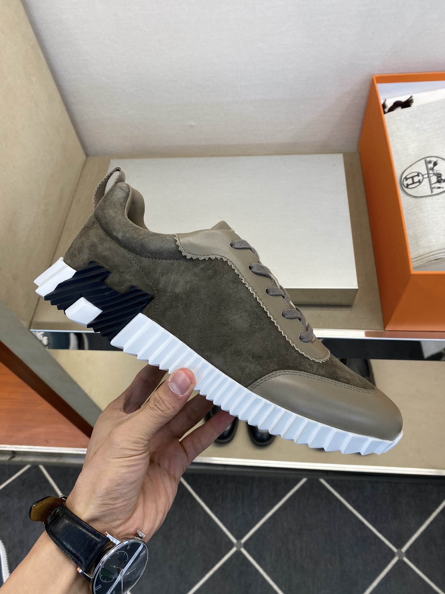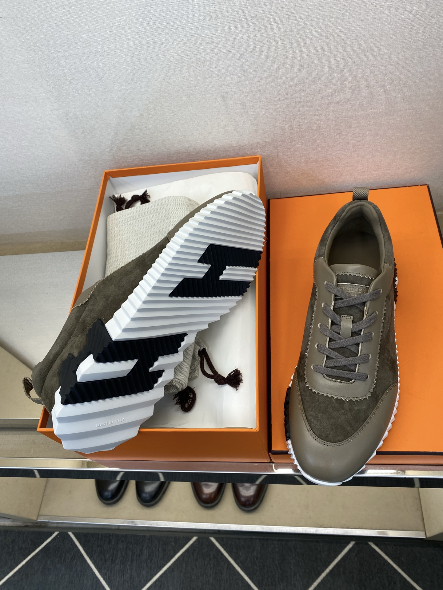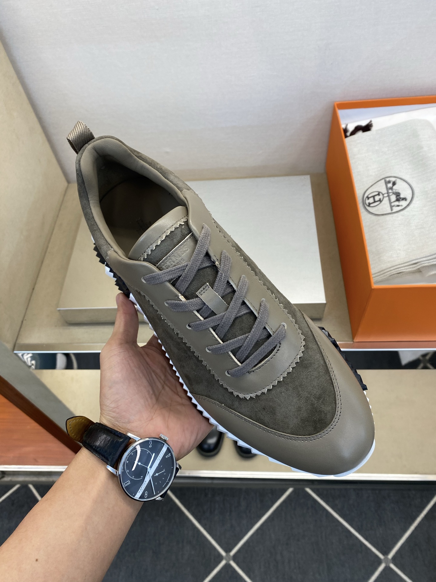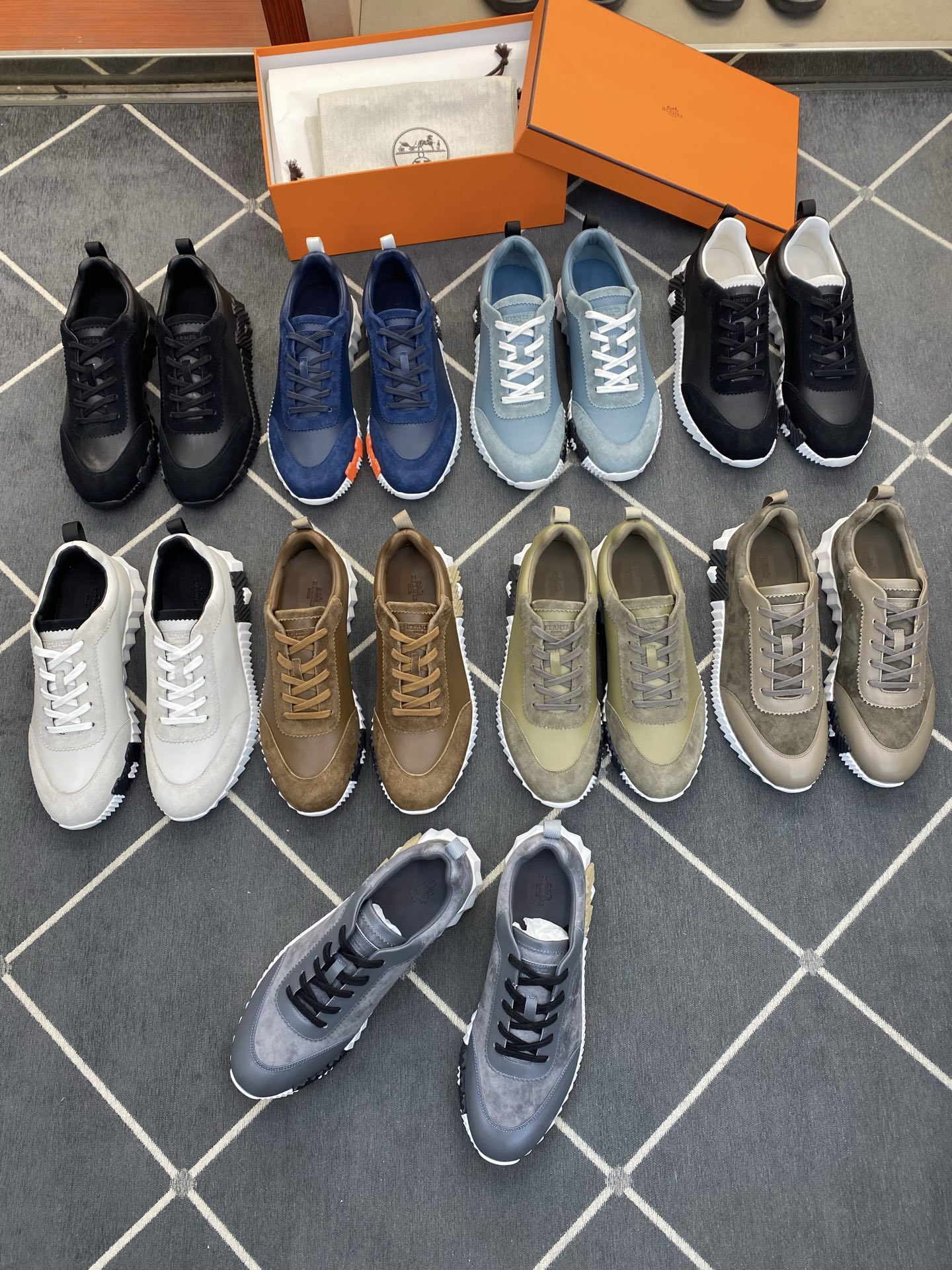 에르메스(Hermes) 클래식 테크니컬 나일론 & 스웨이드 스니커즈 신발