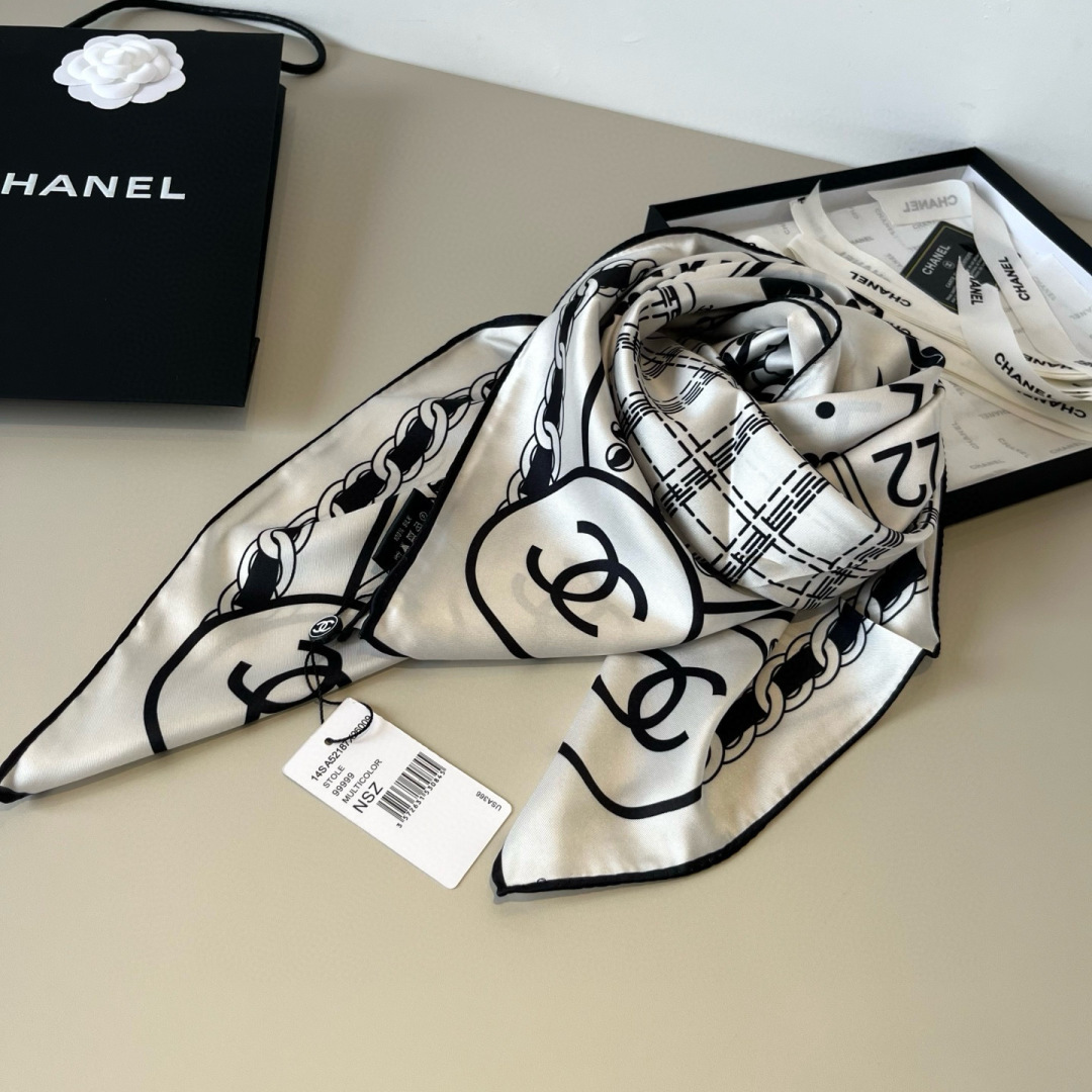샤넬(CHANEL) 카드 패턴 실크 스카프 목도리 스카프