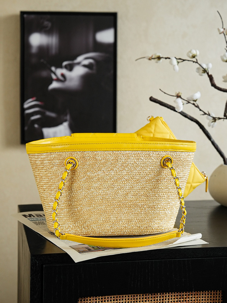 샤넬(Chanel) 26C 라피아 짜임 바스켓백 가방 - 옐로우