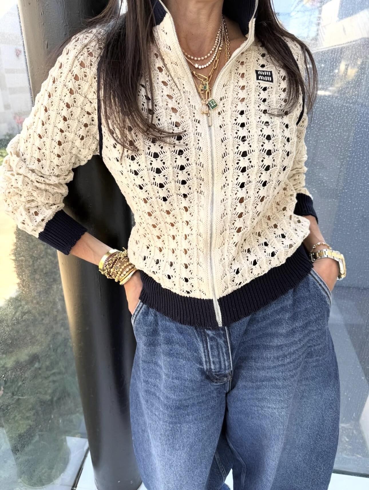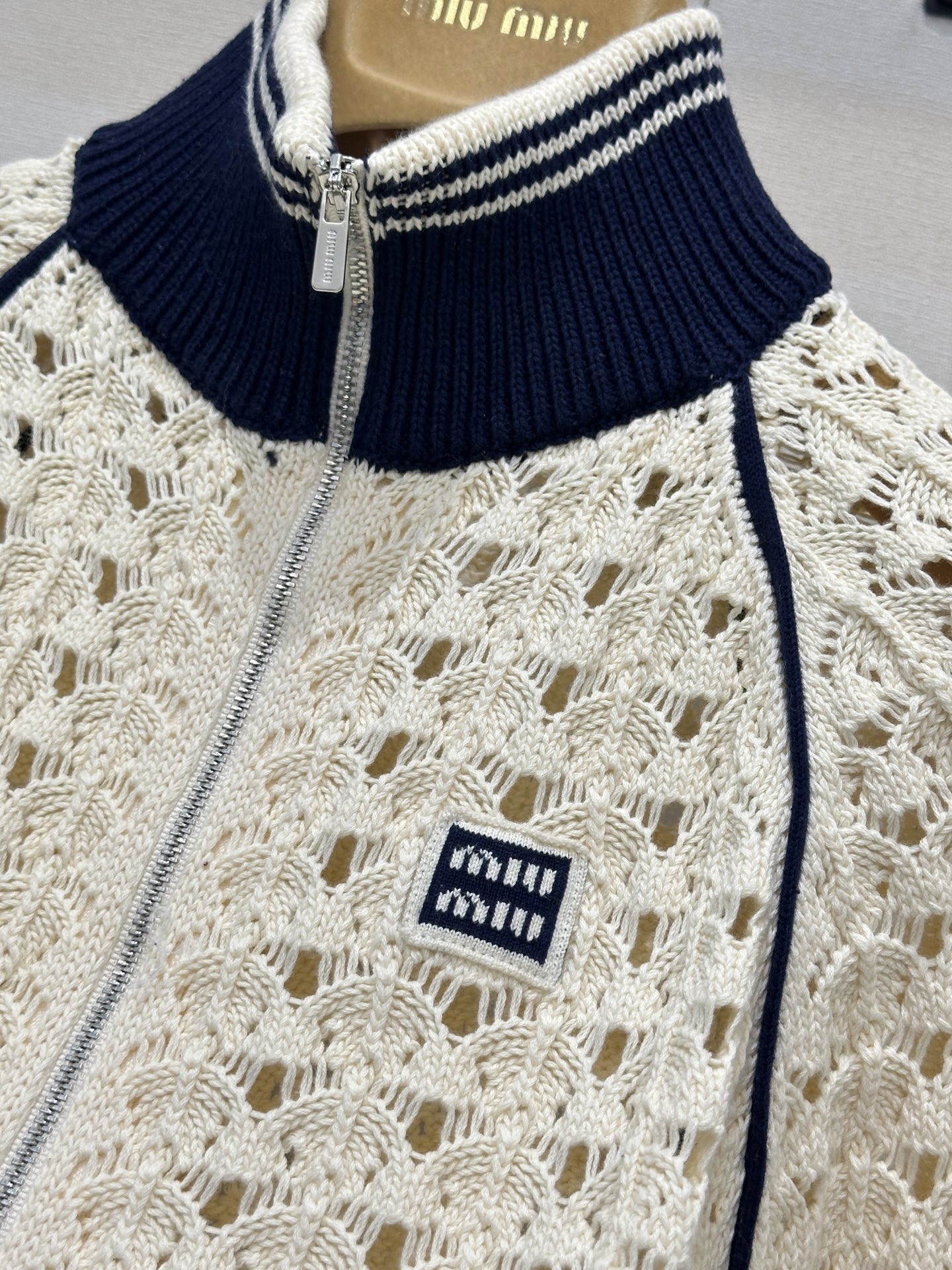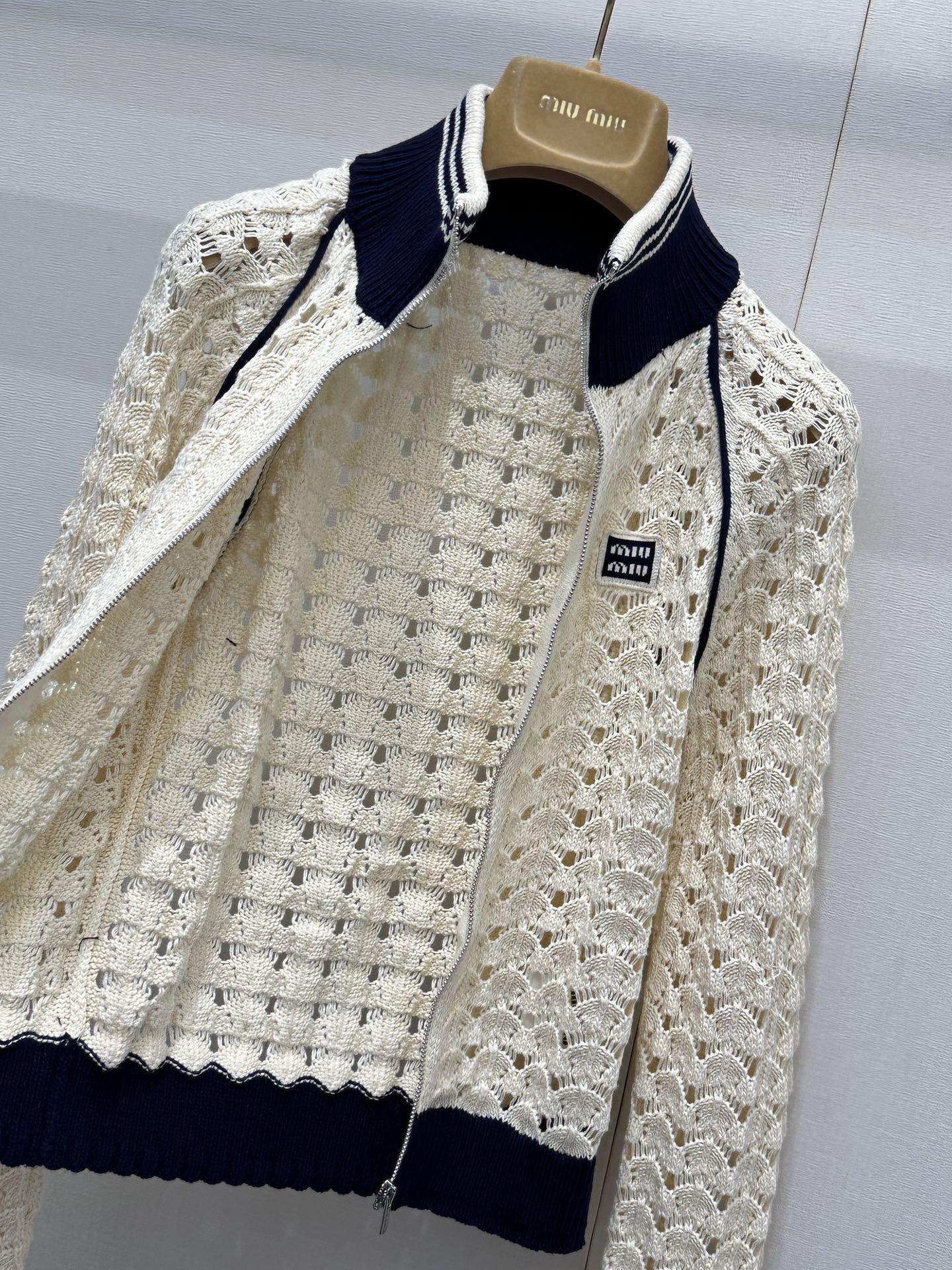 미우미우(MIU MIU) 로고 펀칭 니트 집업 가디건 의류NEWSALE