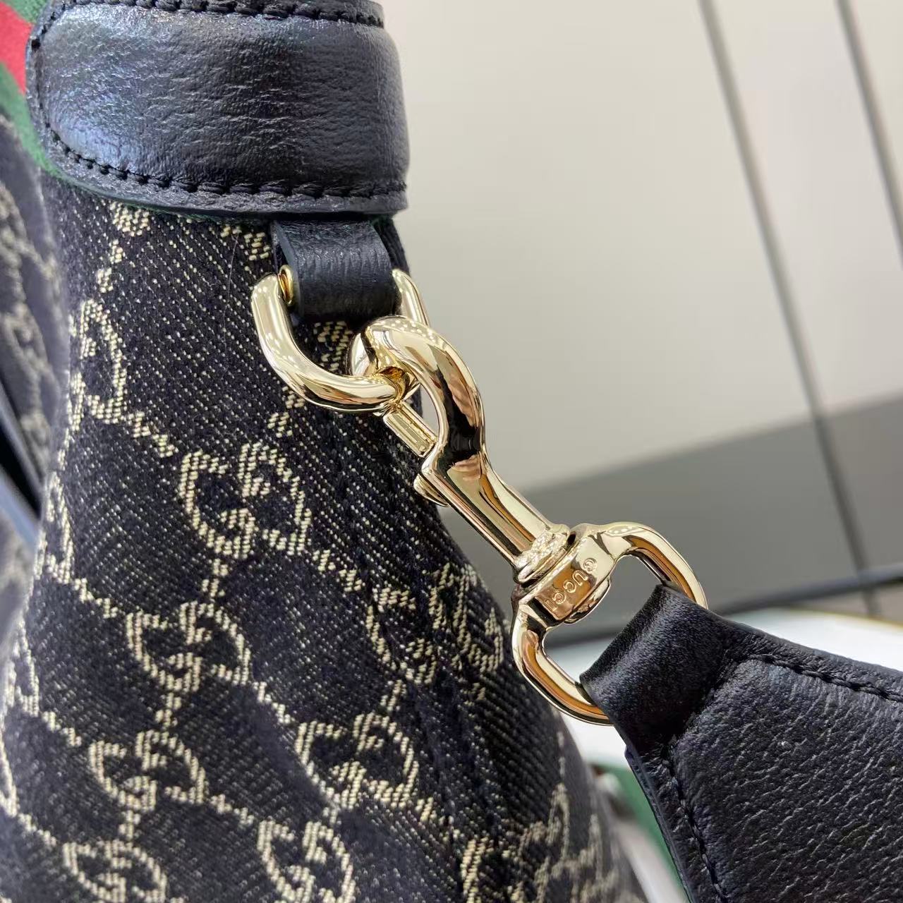디테일: 블루-레드 스트라이프 트리밍, 더블 G 로고, 탈착 가능 핸드 파우치