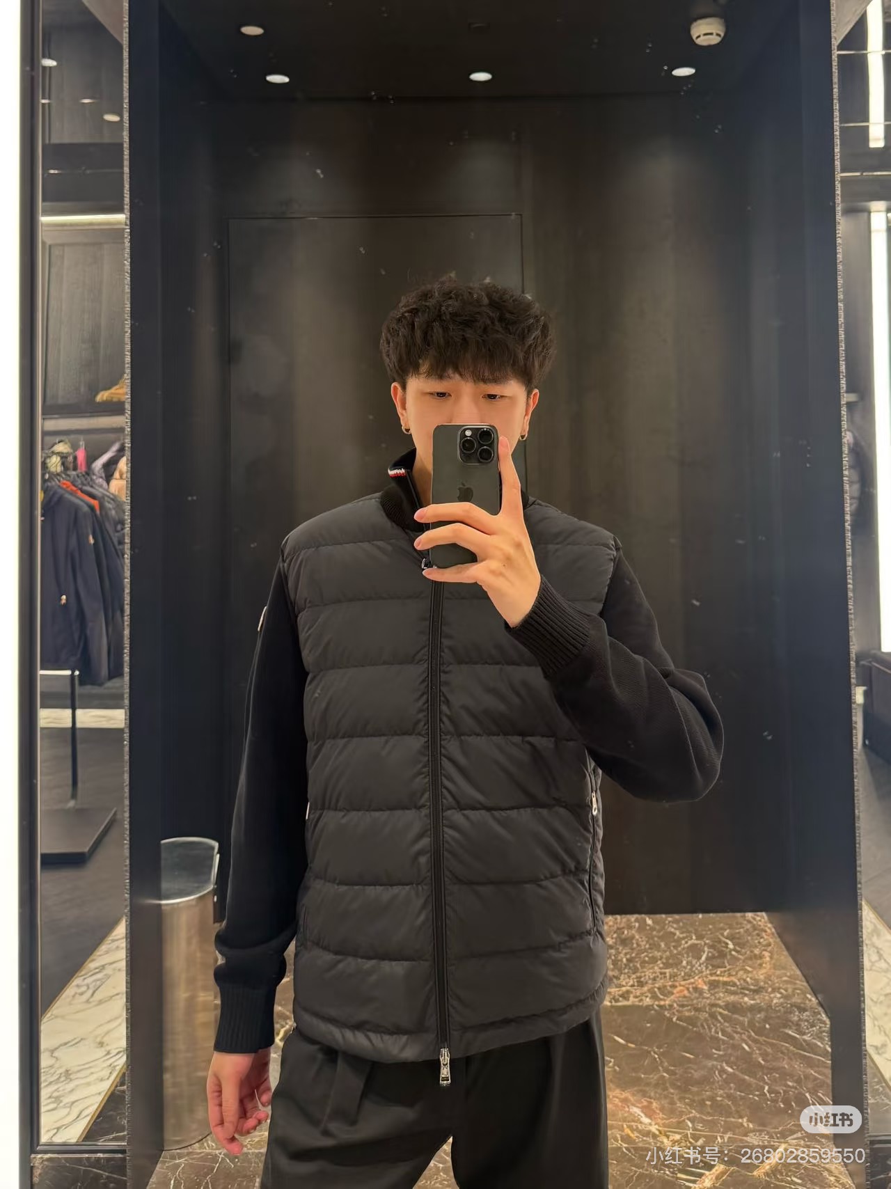 니트와 다운의 믹스 디자인으로 캐주얼하면서 고급스러움 강조