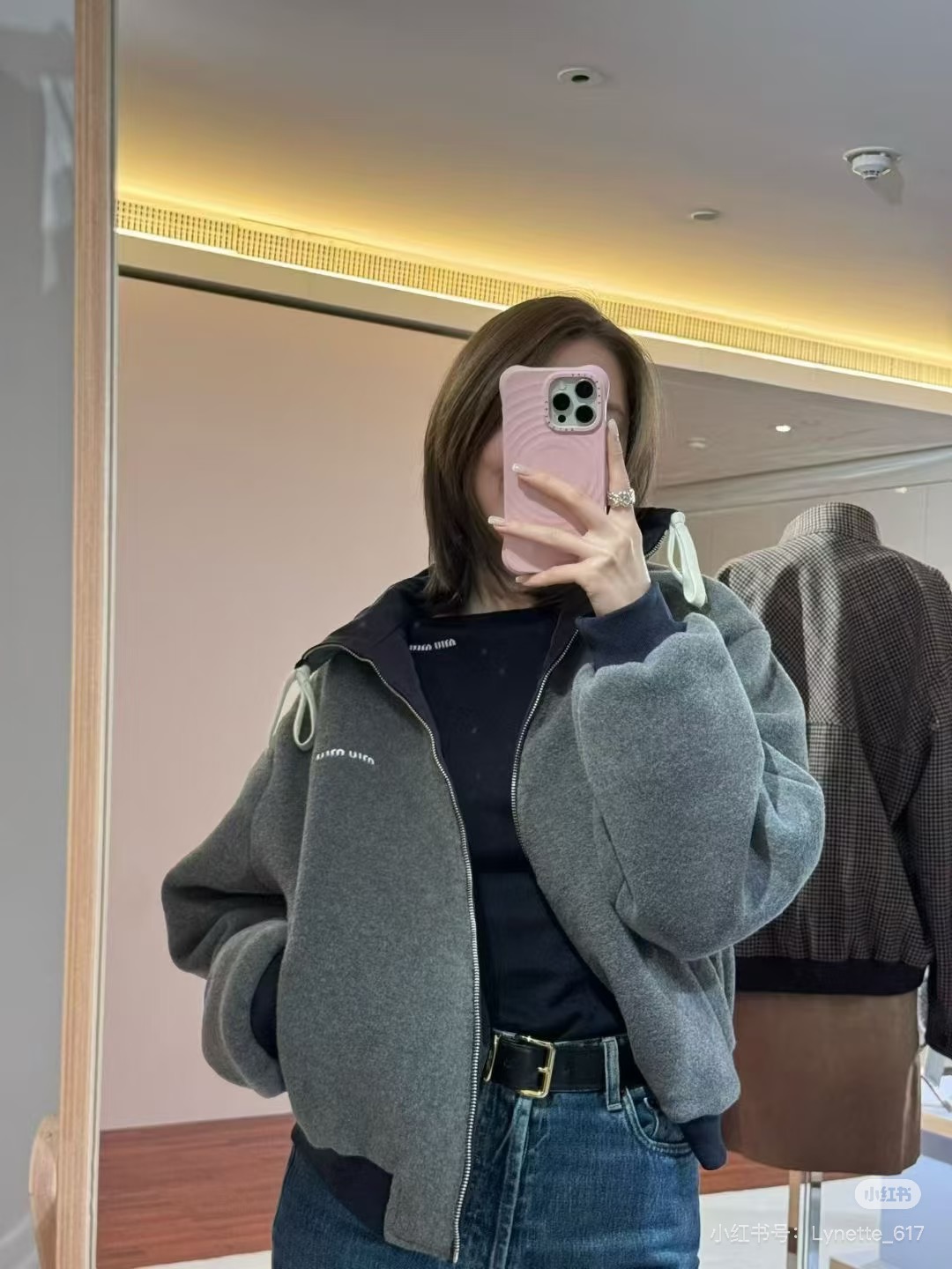 miumiu 미우미우 퍼 칼라 후드 집업 자켓 재킷 의류