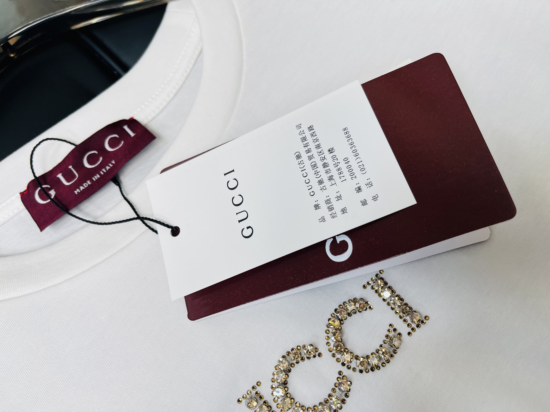 글리터 스톤 장식으로 브랜드 로고 강조