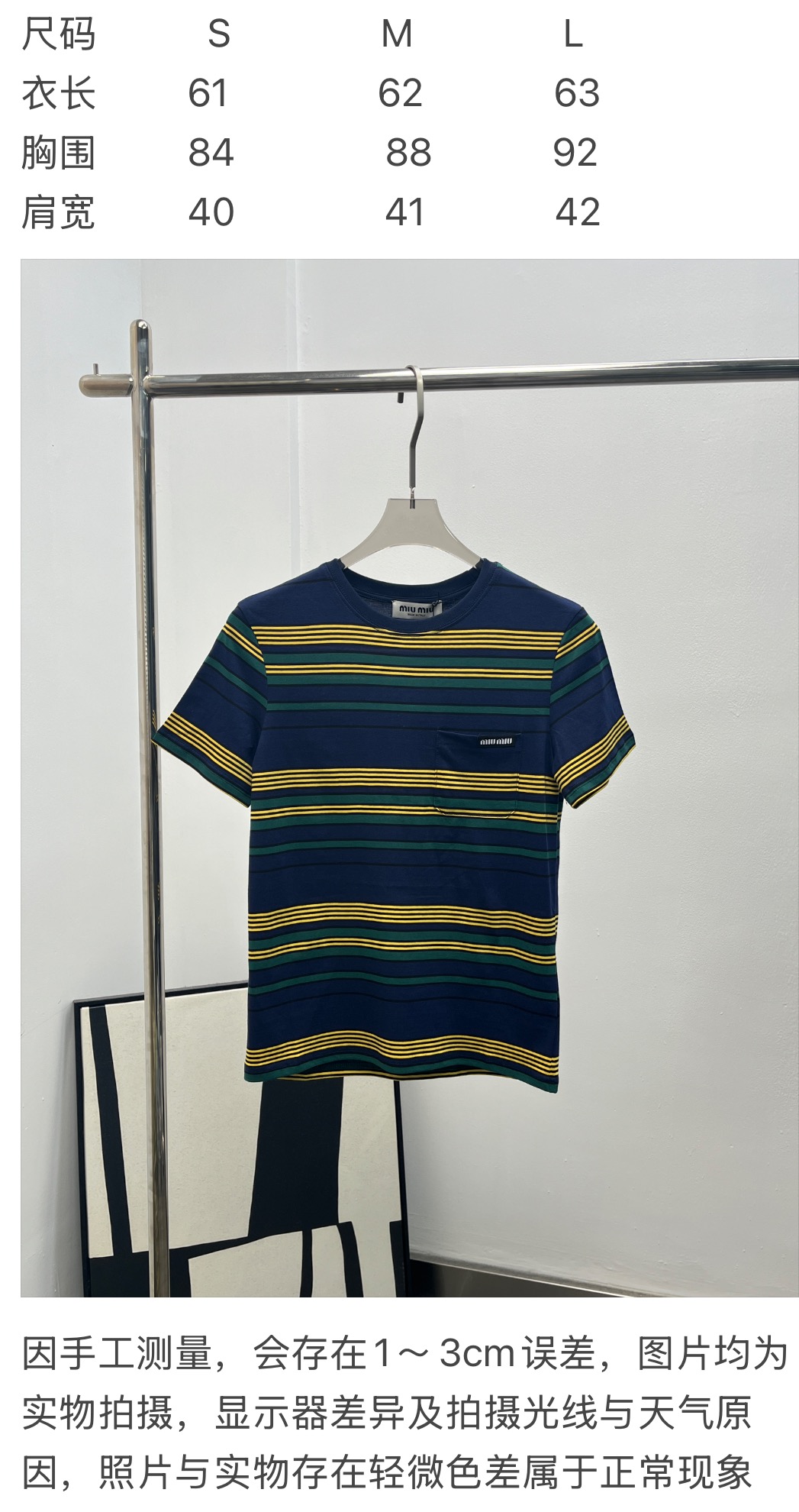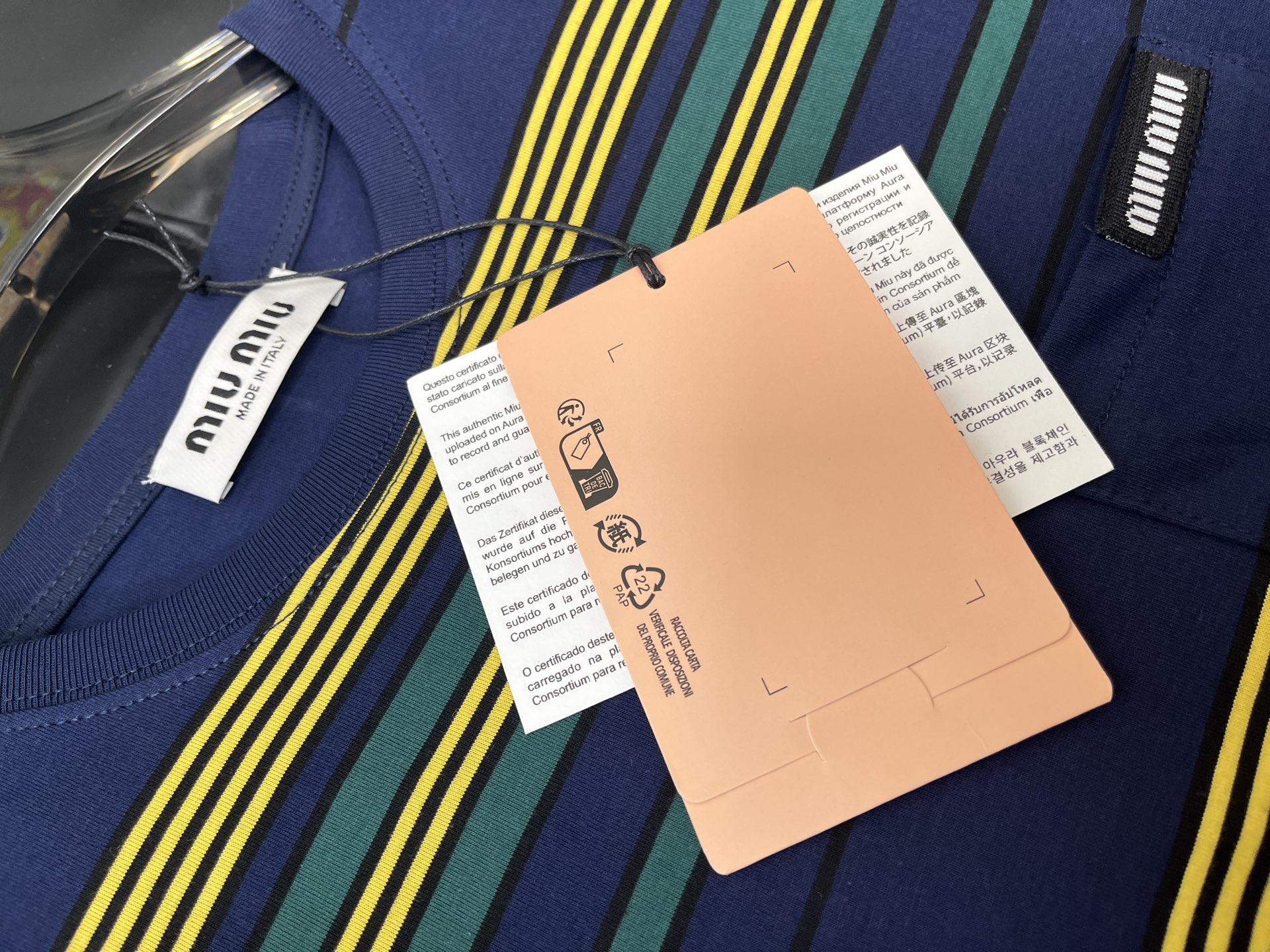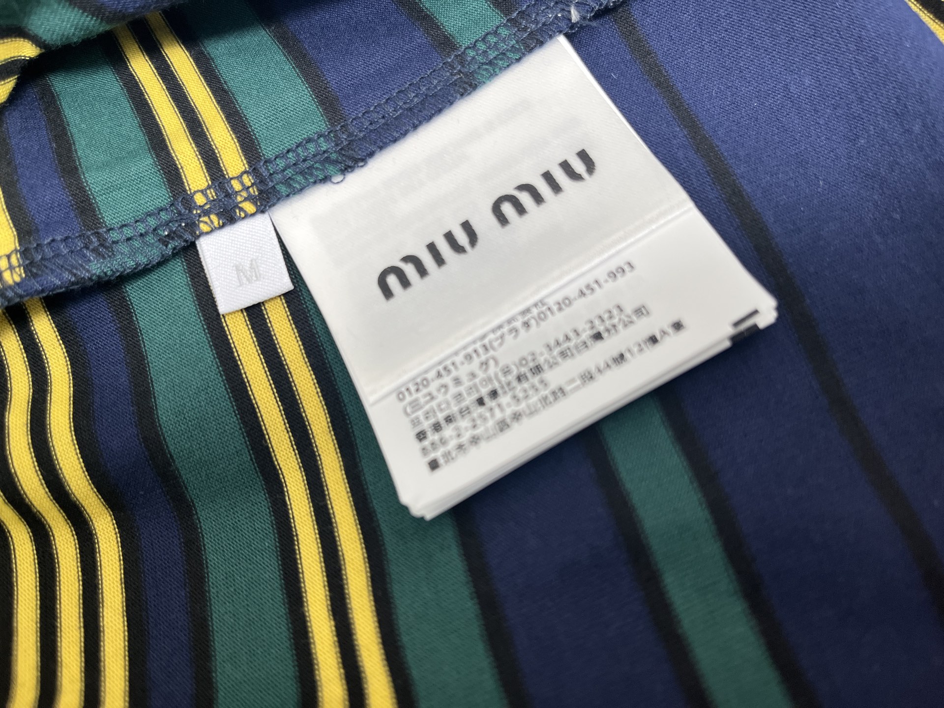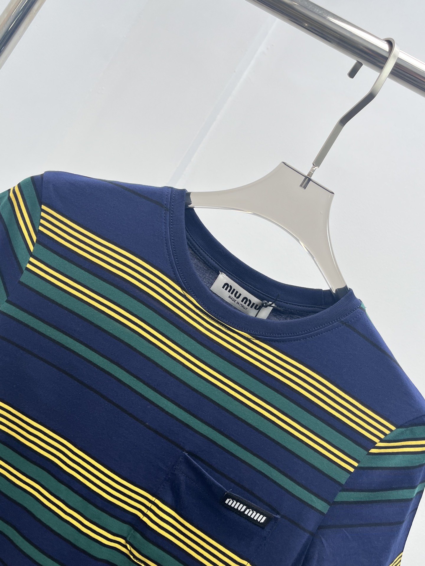 miumiu 미우미우 체크·스트라이프 라운드넥 반팔 티셔츠 의류