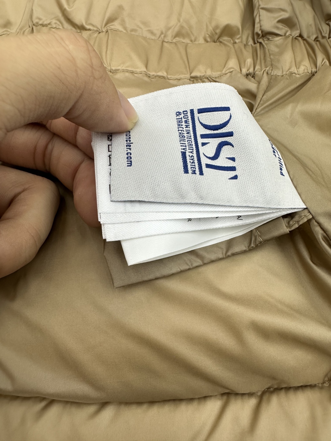 소재: 재생 나일론 외피, 방수 기능, 은은한 새틴 광택 / 안감 100% 나일론 / 충전재 90% 화이트 덕다운 + 10% 깃털