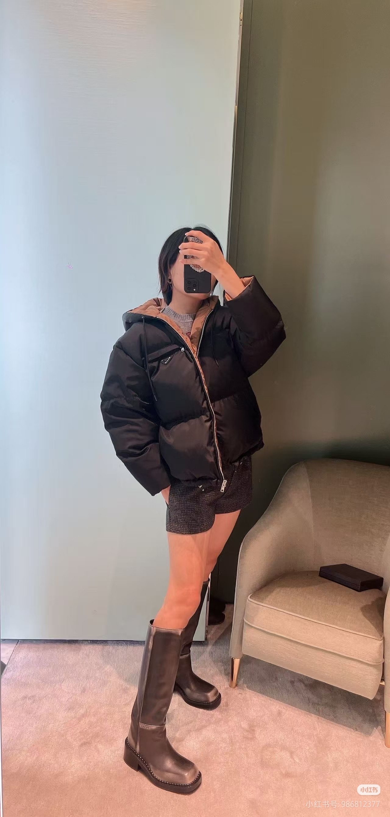 스타일: 후드, 삼각 로고 장식, H라인 입체 재단