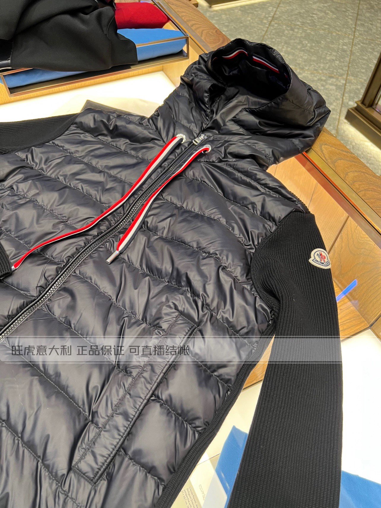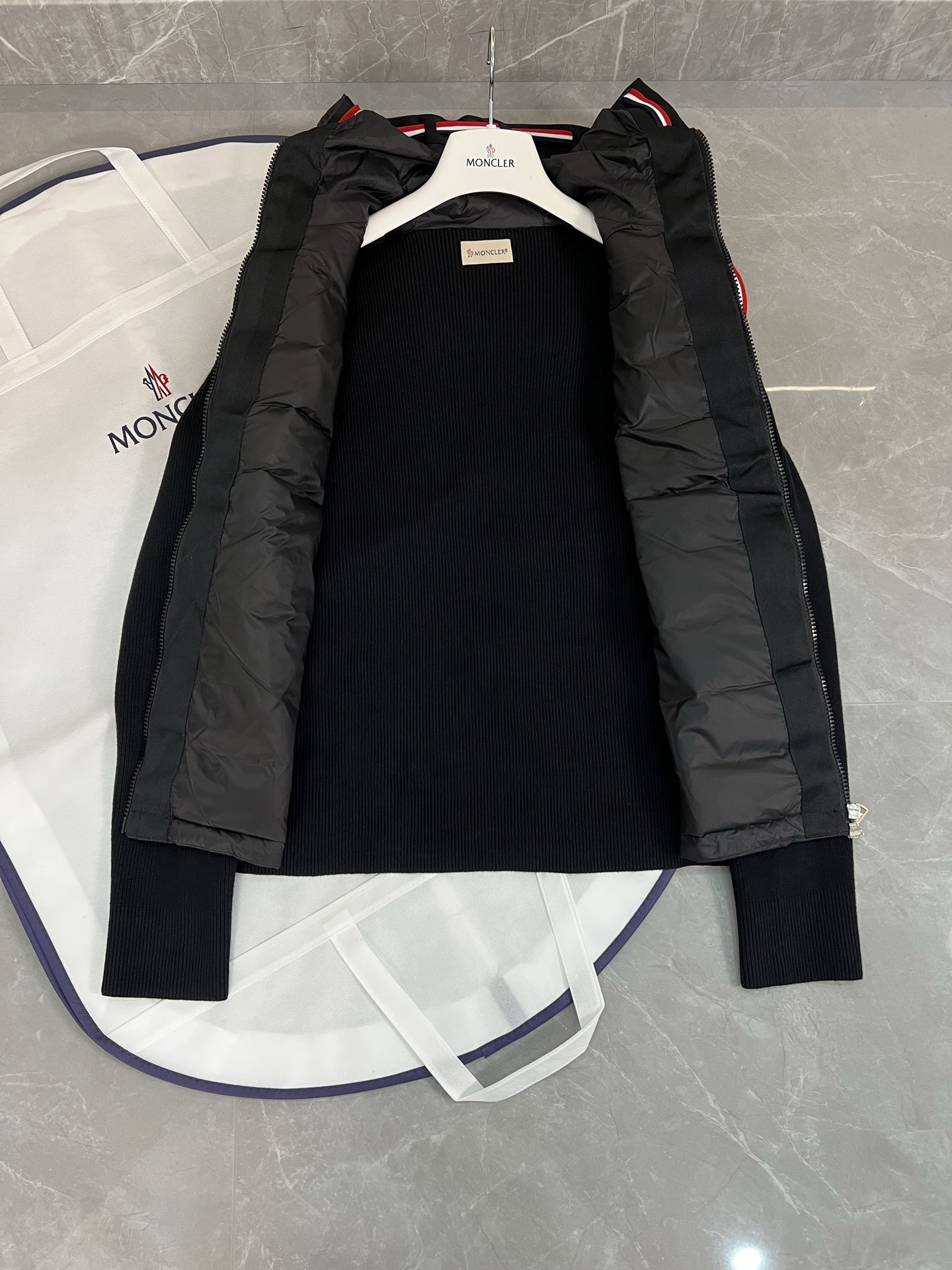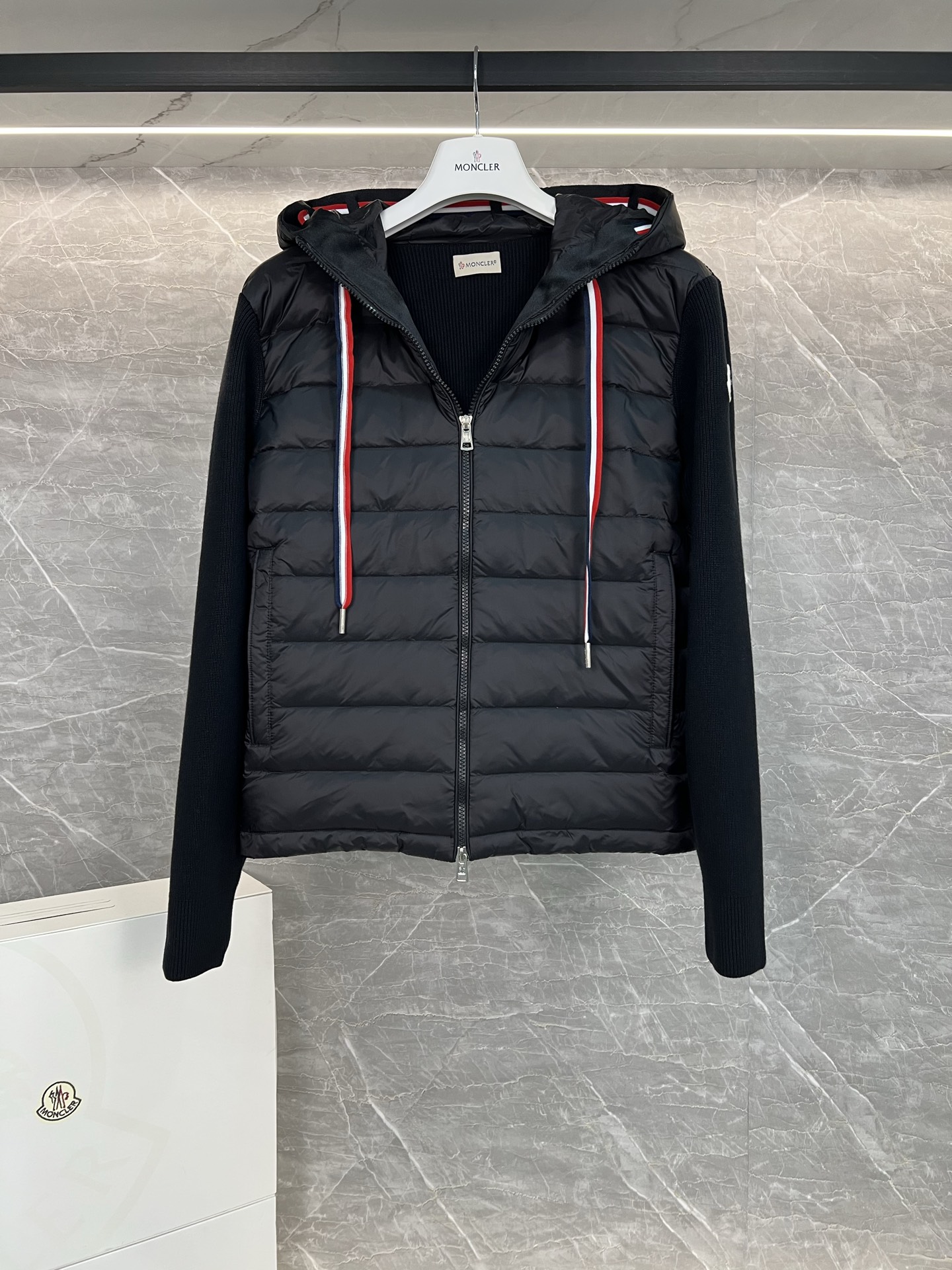 Moncler 몽클레어 몽클레르 남성 울소매 배색 후드 니트 다운 재킷 자켓 의류