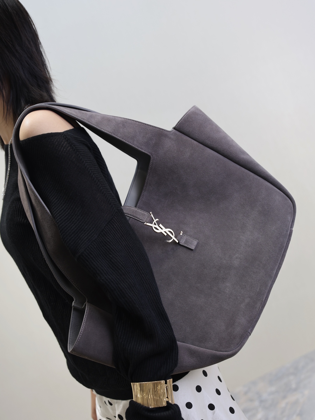 YSL Bea hobo 생로랑 쇼퍼백 / 호보백 가방 (그레이 스웨이드·골드 메탈)