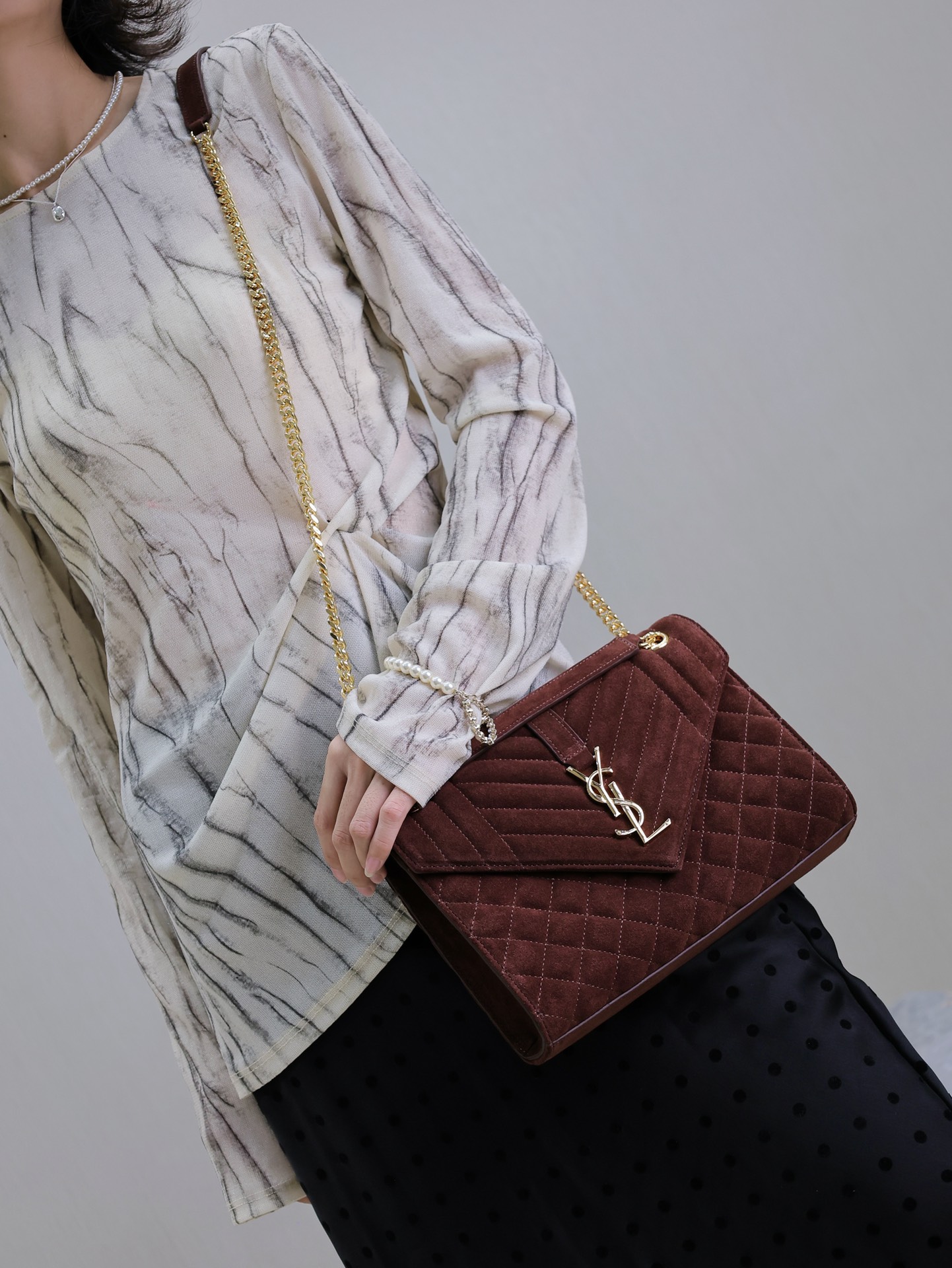 YSL Envelope 생로랑 스웨이드 클러치백 가방 미디움