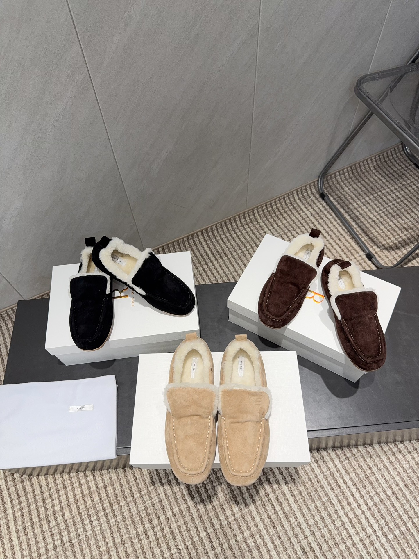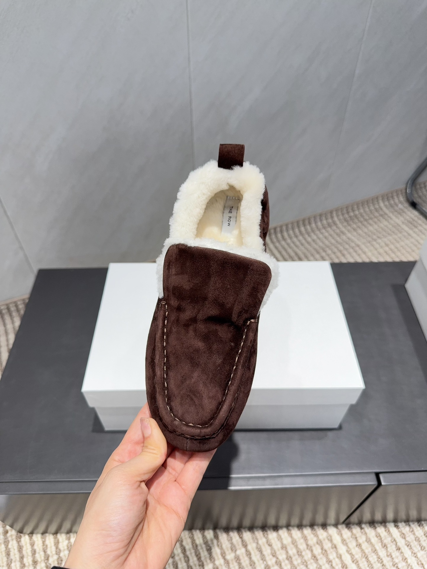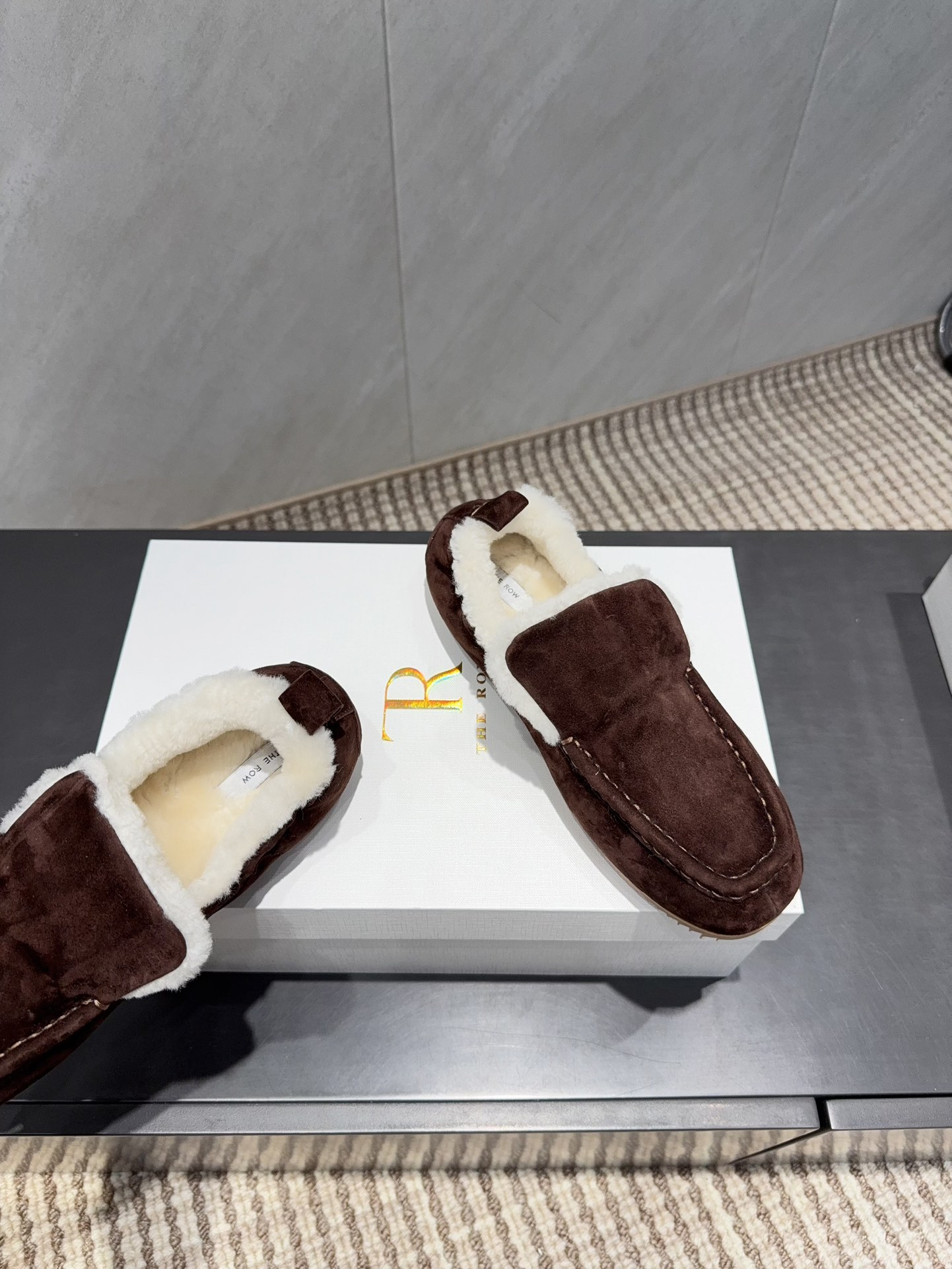THE ROW 더 로우 모직 시어링 털 라운드 퍼 플랫 로퍼 신발