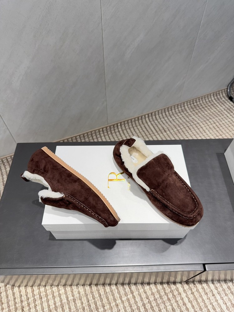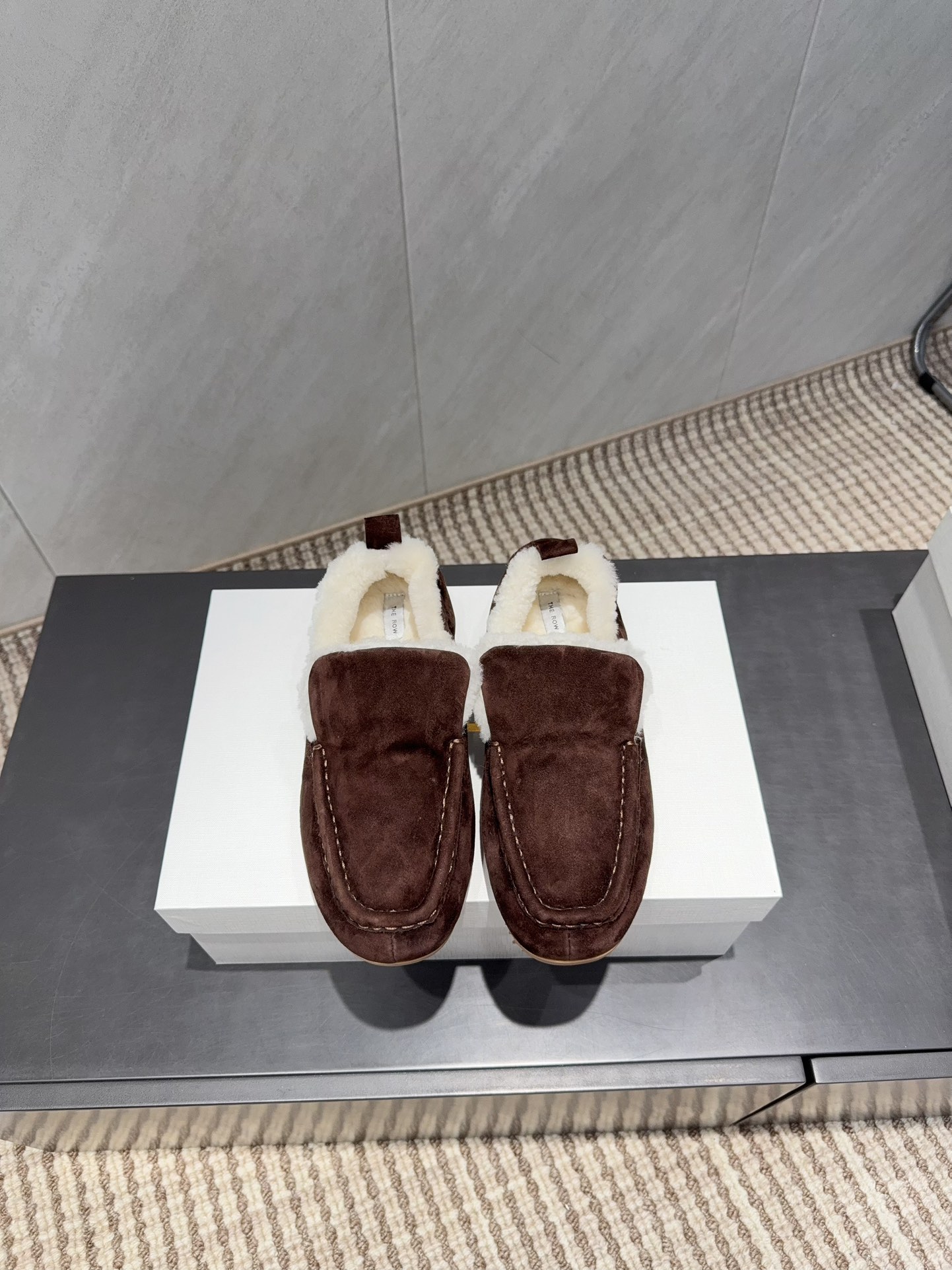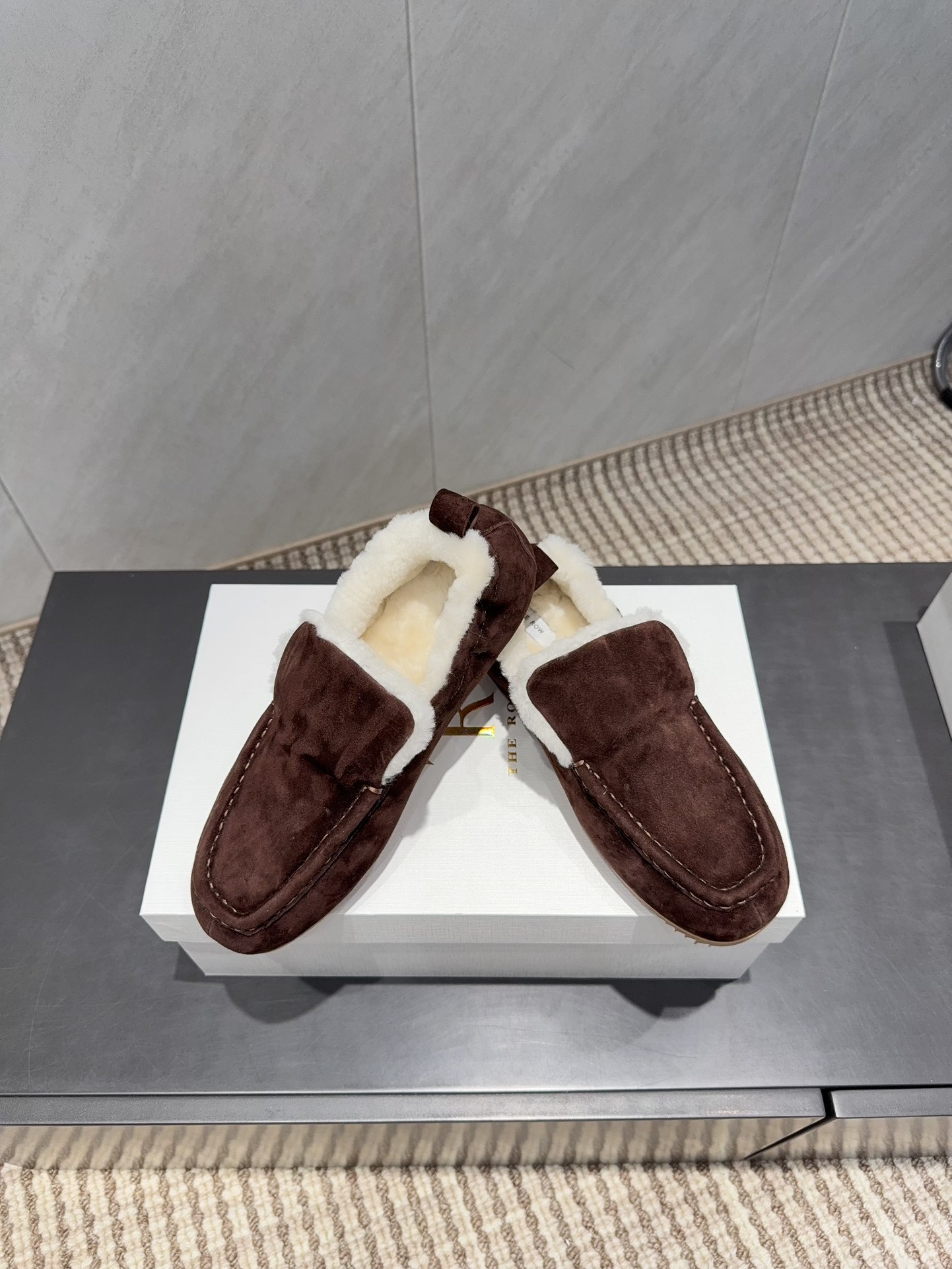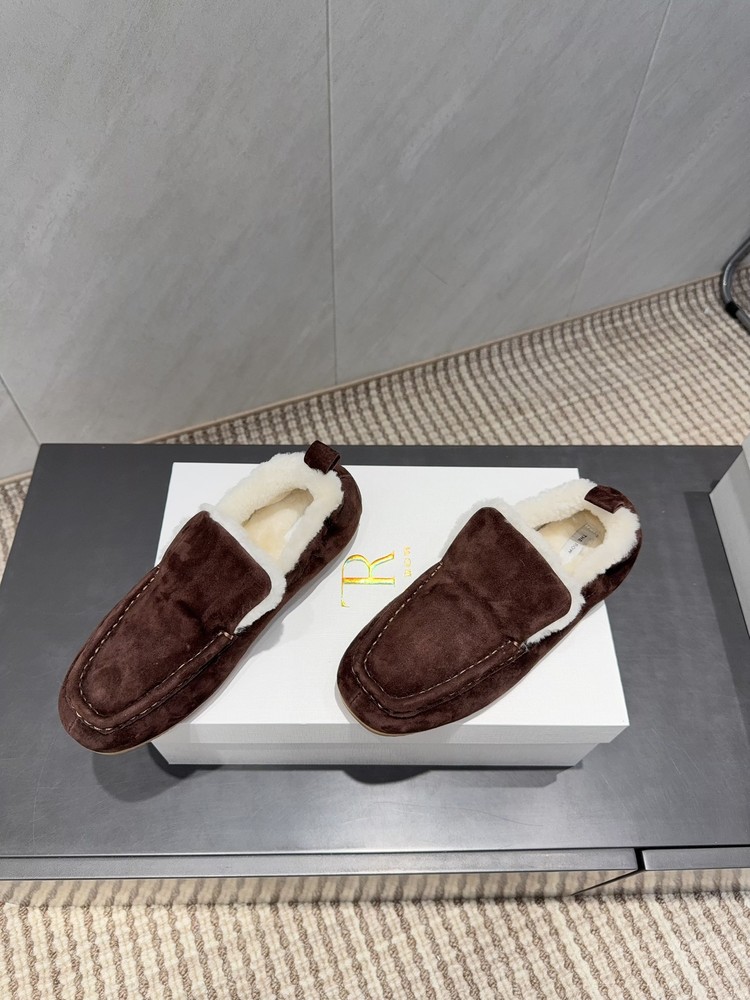 THE ROW 더 로우 모직 시어링 털 라운드 퍼 플랫 로퍼 신발