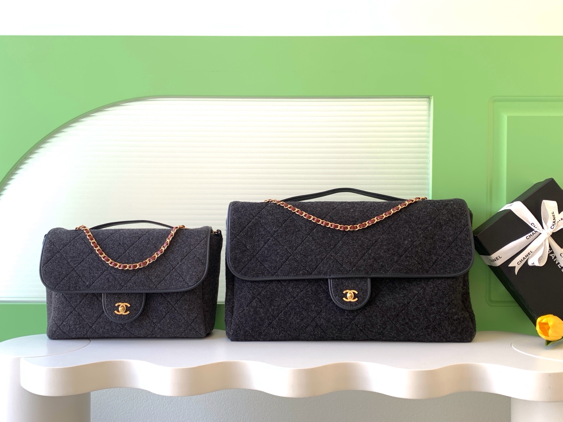 샤넬(Chanel) 25K 블랙 트위드 & 펠트 대형 맥시백 가방