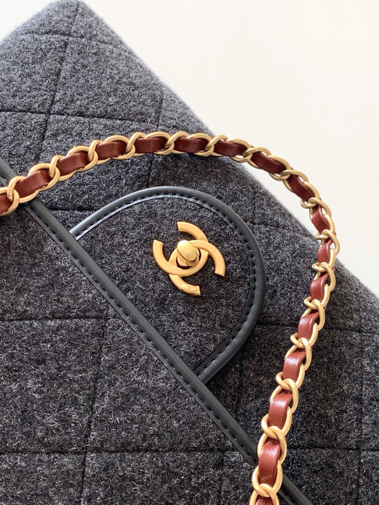 소재 및 무드: 부드러운 펠트와 트위드 소재의 결합으로 가을·겨울 시즌 대역이나 니트와 매치했을 때 특유의 따뜻하고 럭셔리한 분위기를 연출합니다.