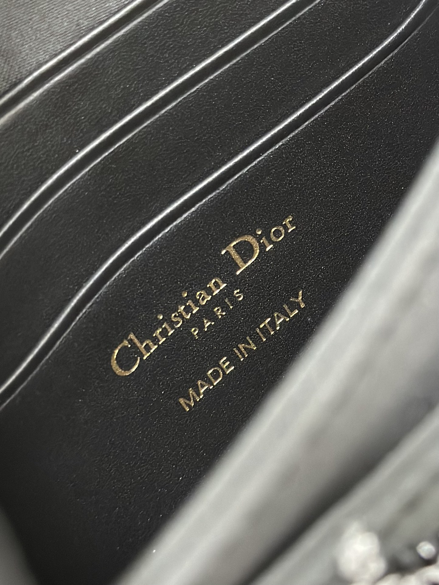소재 및 디테일: 고급스러운 새틴(Satin) 소재로 제작되어 은은한 광택이 감돌며, 전면 플랩에는 상징적인 D.I.O.R. 참이 장식되어 생동감을 더합니다.