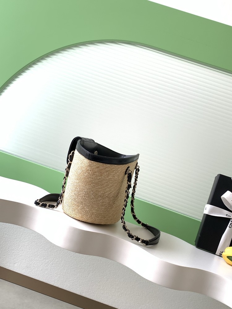 샤넬(Chanel) 26C 라피아 & 블랙 가죽 바스켓 백 - 가방 스몰