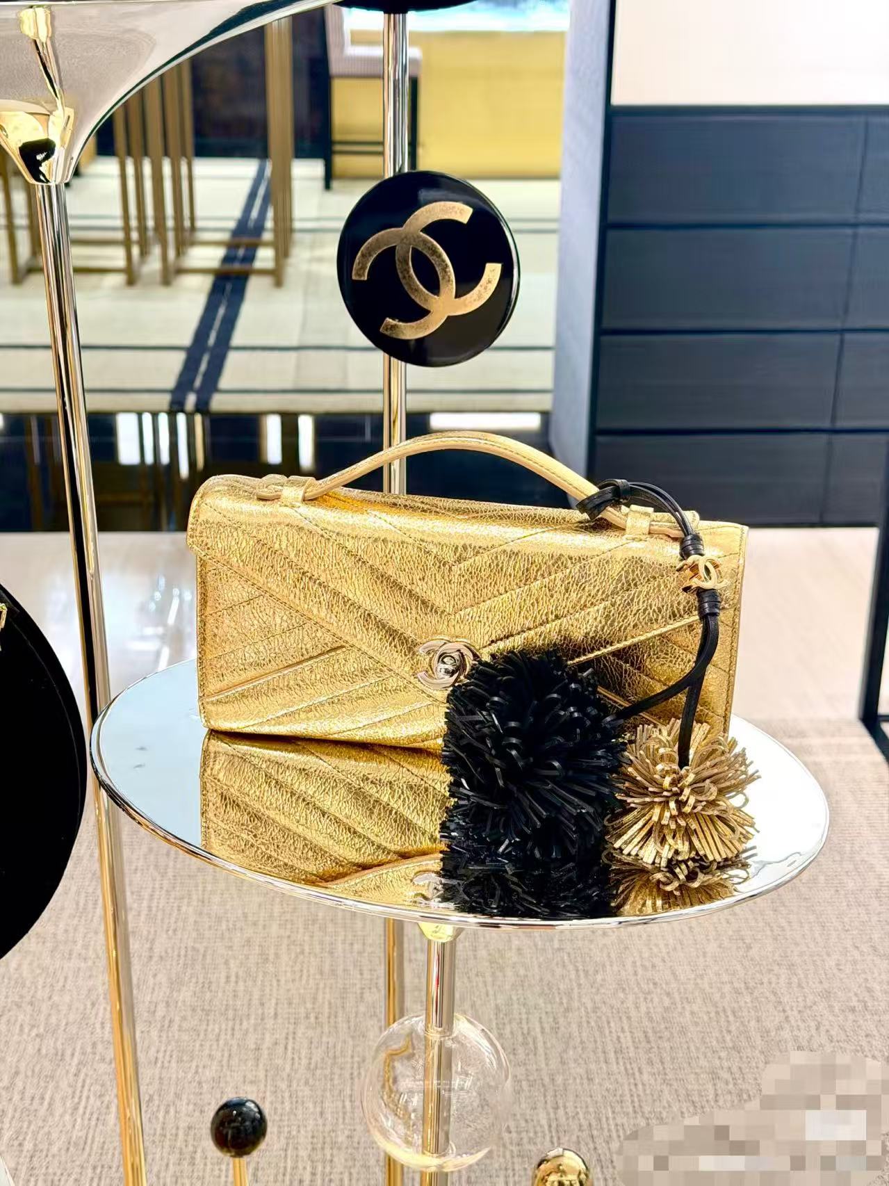 디자인: 클래식한 **더블 C 로고와 (다이아몬드 퀼팅)**이 돋보이는 26X 시리즈 신작입니다. 홀리데이 무드의 화사한 샴페인 골드 컬러가 특징입니다.