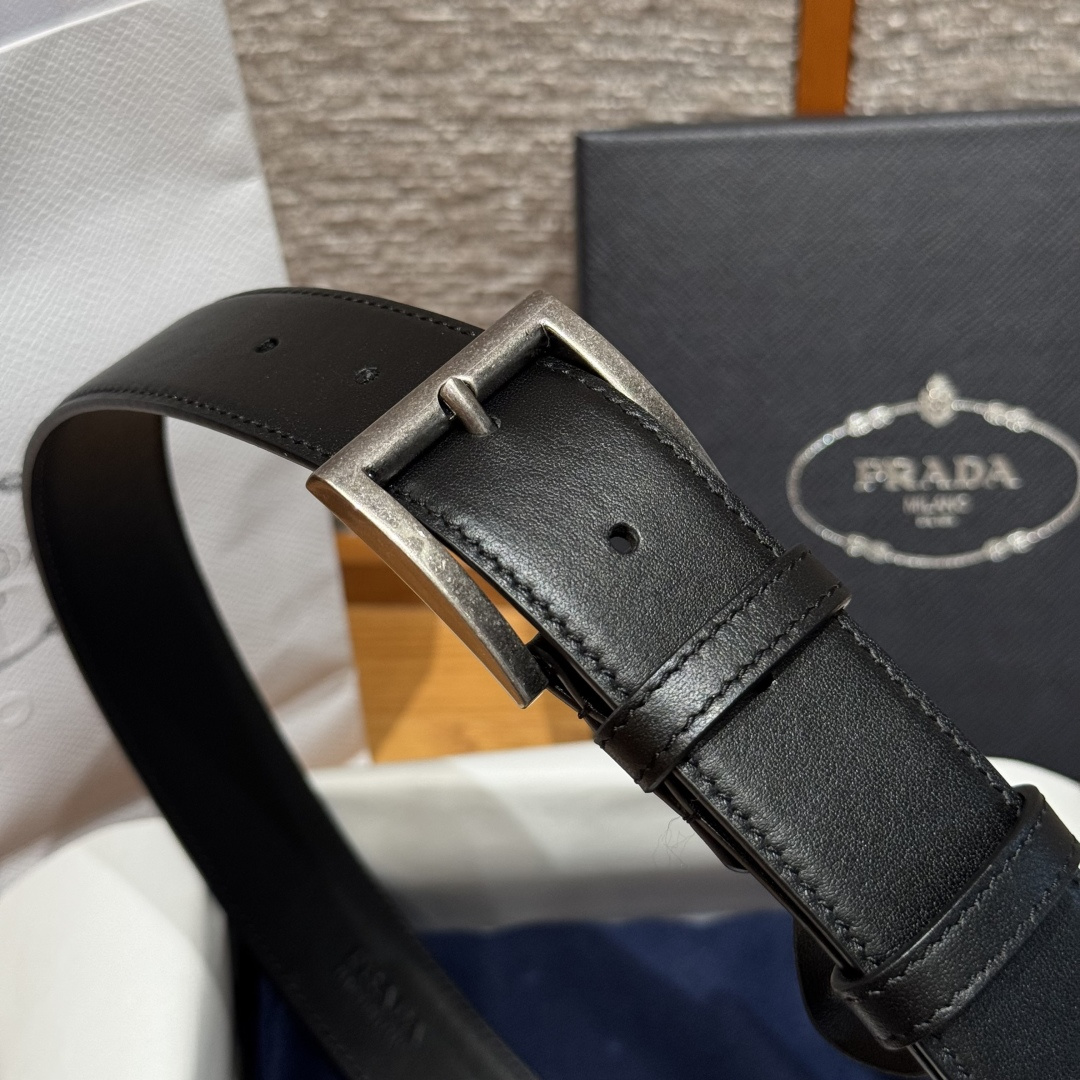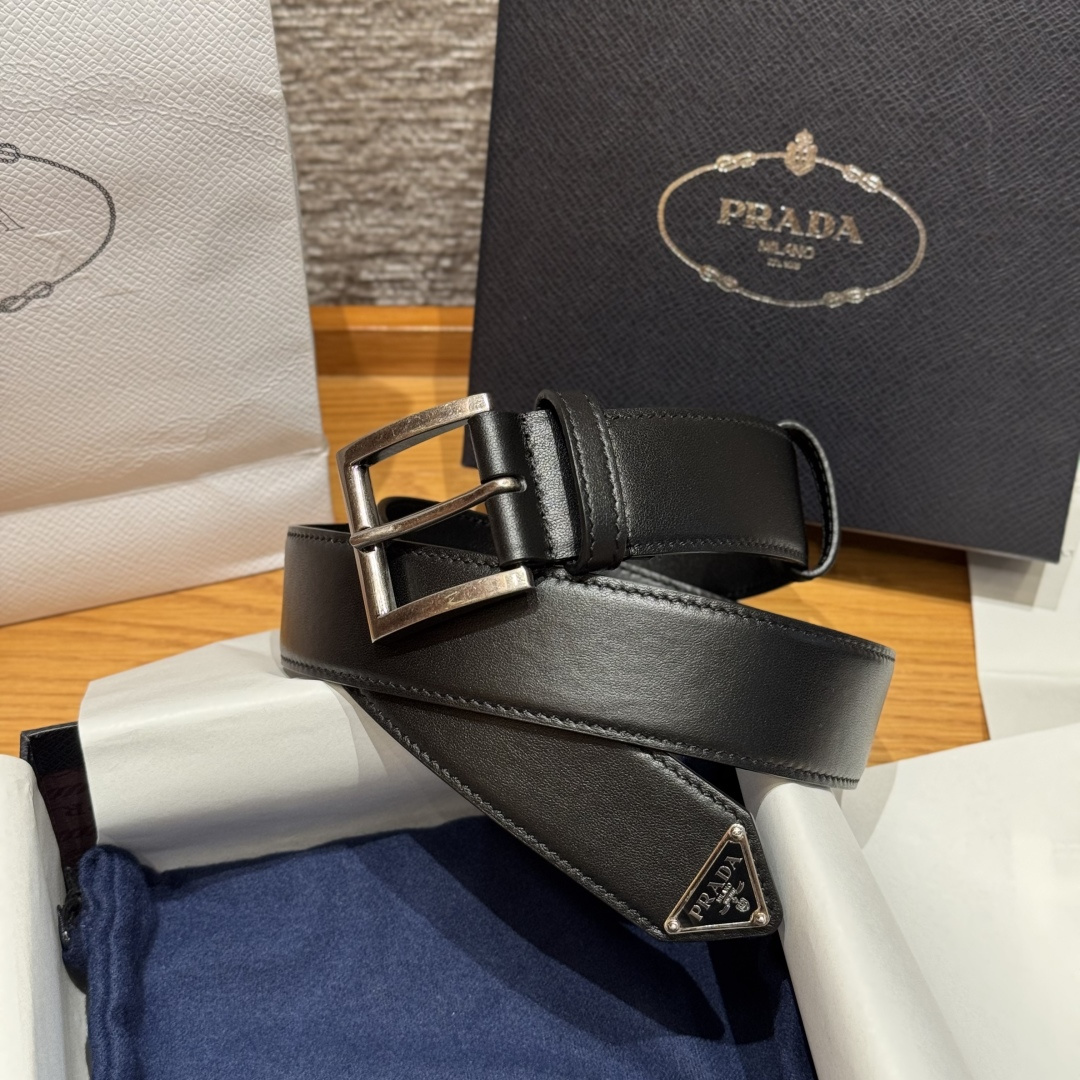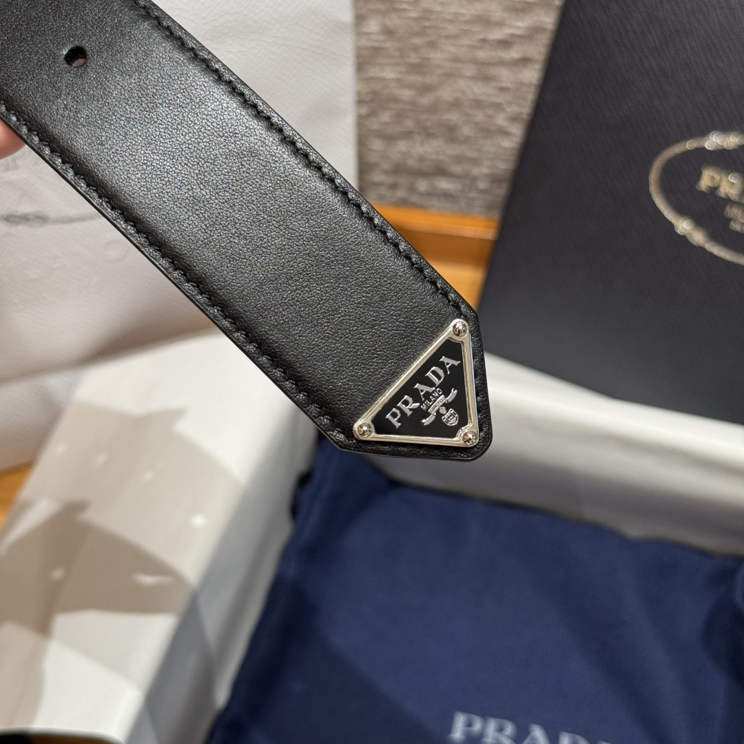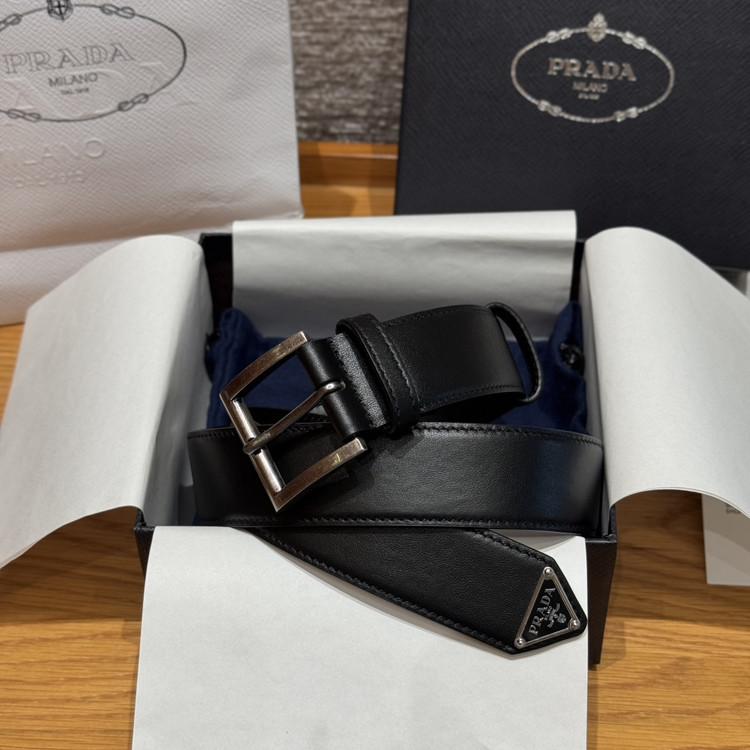 프라다(Prada) 트라이앵글 로고 장식 소가죽 벨트