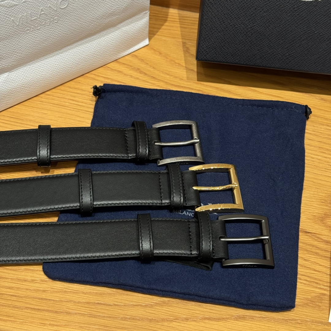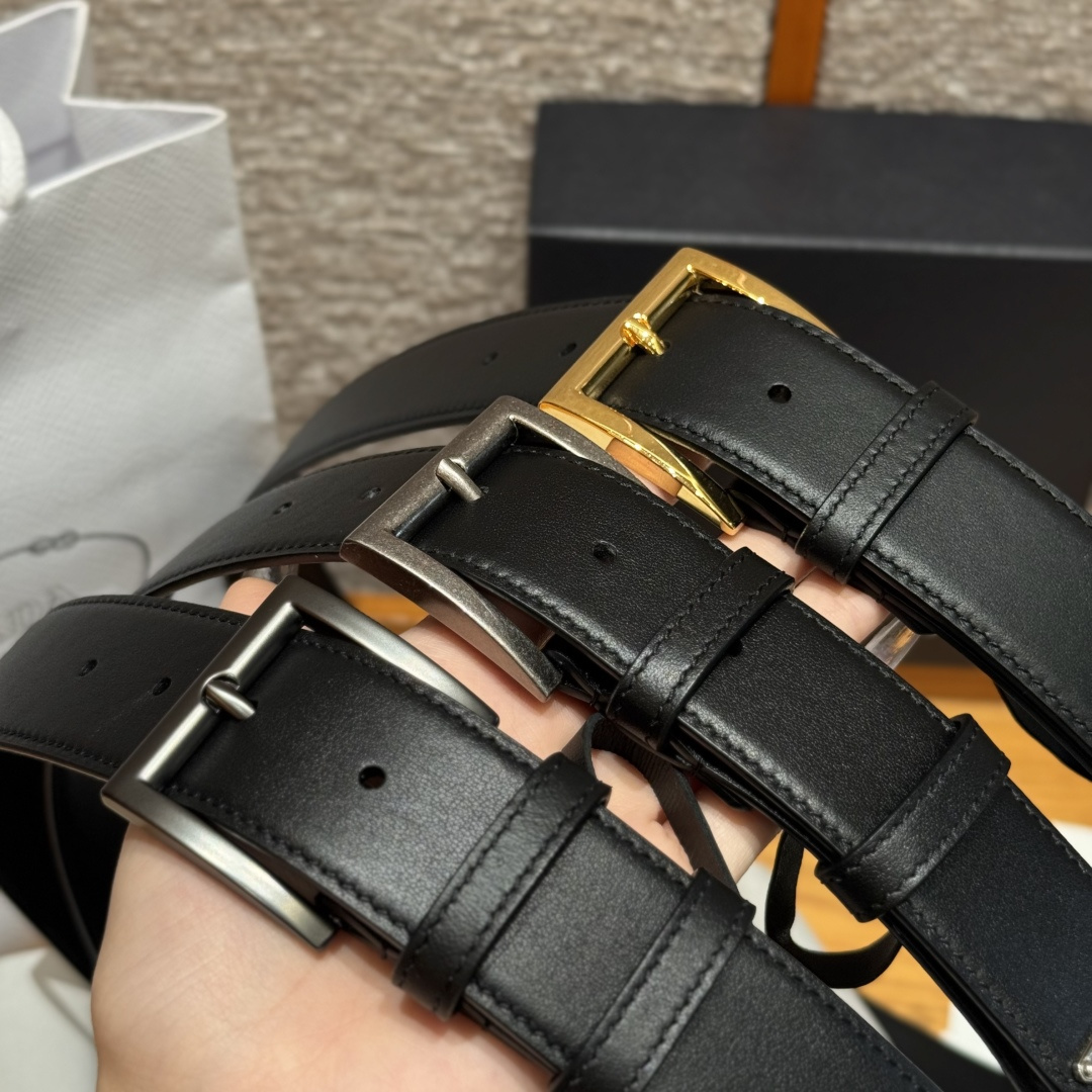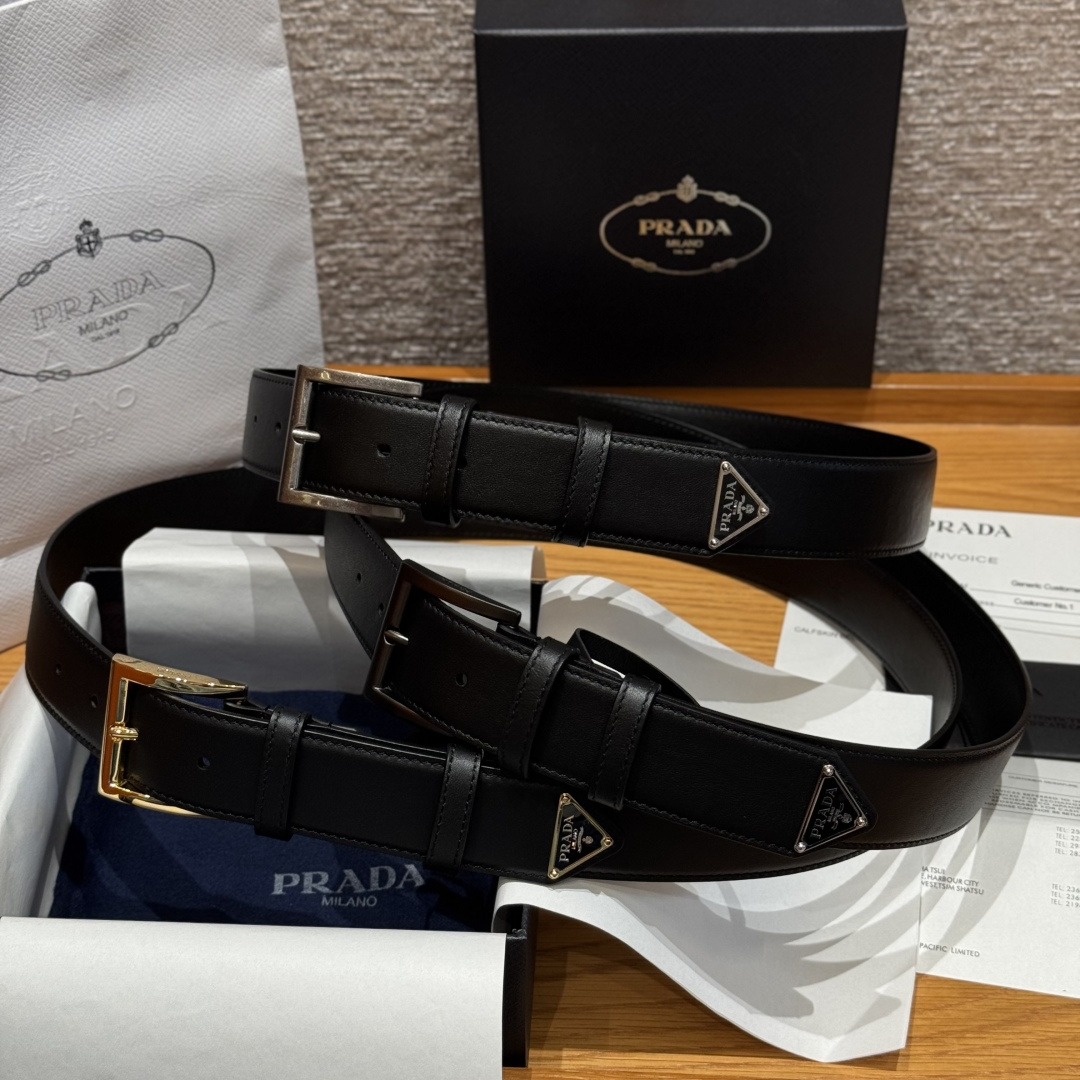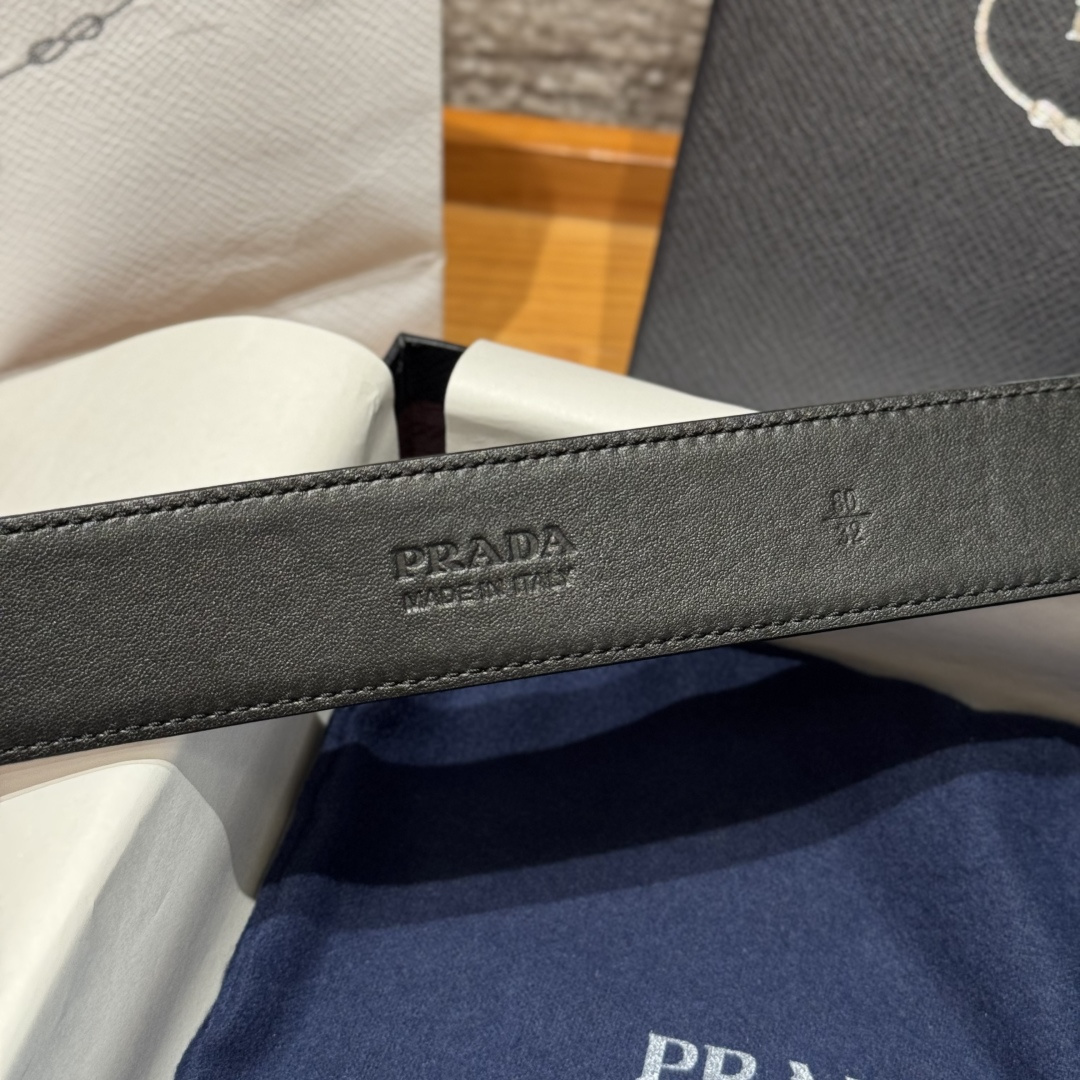 프라다(Prada) 트라이앵글 로고 장식 소가죽 벨트