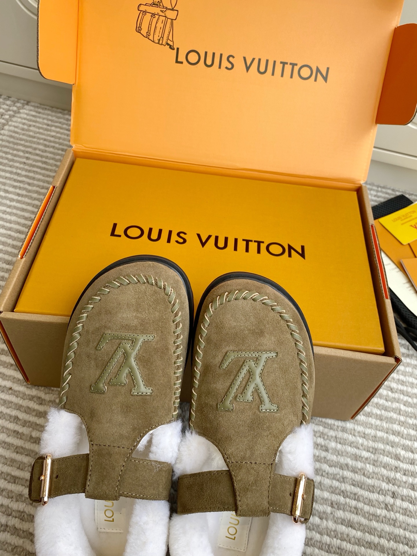 루이비통(Louis Vuitton) 콜로라도(Colorado) 플랫폼 자수 양털 메리제인 로퍼 플랫 슈즈 신발