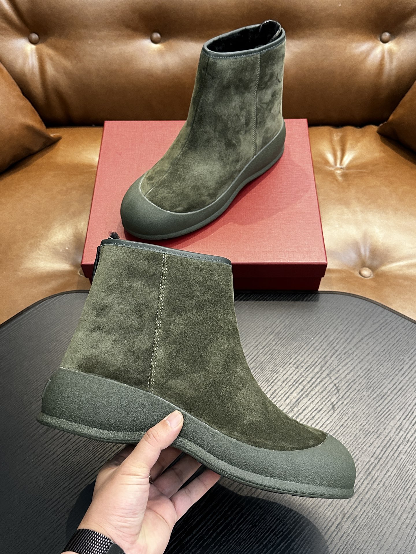 갑피: 고급스러운 스웨이드(융면) 소가죽